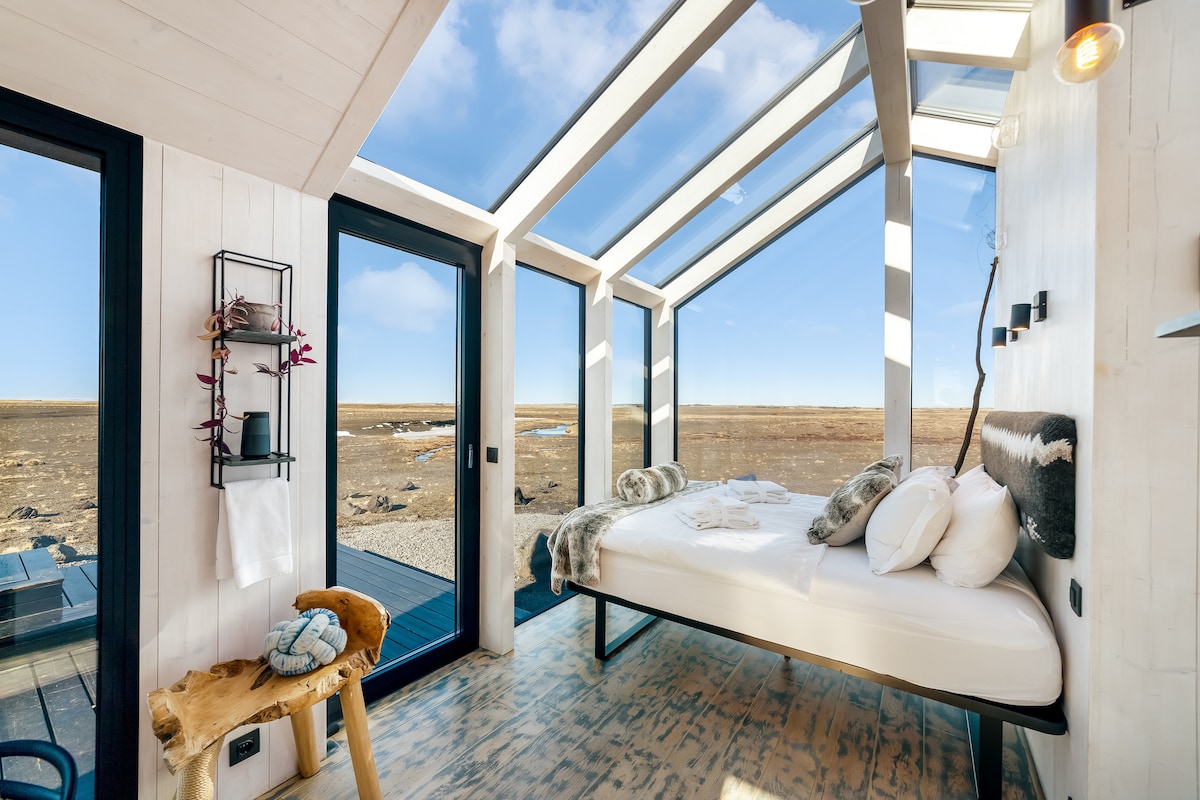 ಅನನ್ಯ ಐಸ್ಲ್ಯಾಂಡಿಕ್ ಎಸ್ಕೇಪ್ಗೆ ಸುಸ್ವಾಗತ. 360ಡಿಗ್ರಿ ವೀಕ್ಷಣೆಗಳು ಮತ್ತು ಖಾಸಗಿ ಹಾಟ್ ಟಬ್ ಹೊಂದಿರುವ ನಮ್ಮ ಸಮಕಾಲೀನ ಗಾಜಿನ ಕಾಟೇಜ್ "ಬ್ಲಾರ್" ನ ಆರಾಮದಿಂದ ಐಸ್ಲ್ಯಾಂಡ್ನ ನೈಸರ್ಗಿಕ ಸೌಂದರ್ಯದಲ್ಲಿ ಮುಳುಗಿರಿ. ವಿಶ್ರಾಂತಿ ಮತ್ತು ಪ್ರಶಾಂತತೆಗಾಗಿ ವಿನ್ಯಾಸಗೊಳಿಸಲಾದ ಈ ರಿಟ್ರೀಟ್ ಐಸ್ಲ್ಯಾಂಡ್ನ ಸಾಂಪ್ರದಾಯಿಕ ಭೂದೃಶ್ಯಗಳನ್ನು ಅನ್ವೇಷಿಸಲು ಪರಿಪೂರ್ಣ ನೆಲೆಯನ್ನು ಒದಗಿಸುತ್ತದೆ.