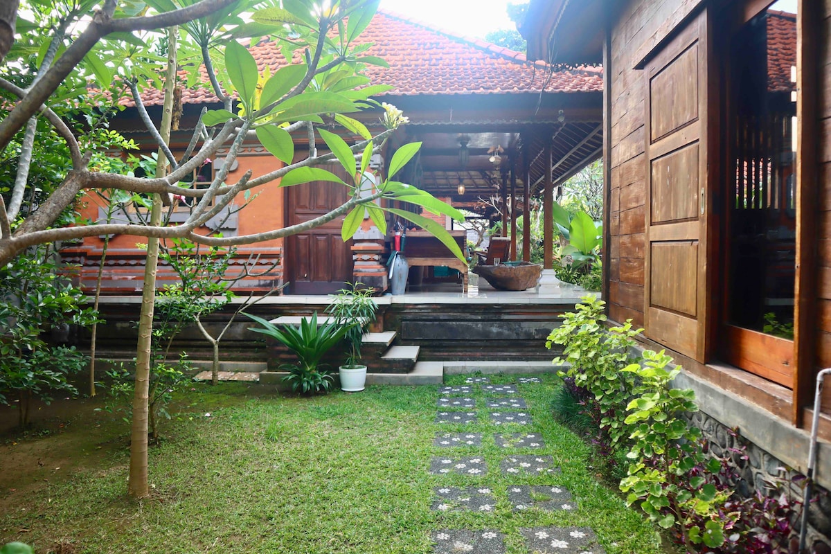 ಬಾಲಿ ಮತ್ತು ಜಾವಾ-ಶೈಲಿಯ ಮನೆಗಳನ್ನು ಹೊಂದಿರುವ ಮಧ್ಯ ಸನೂರ್ನಲ್ಲಿ ಉಷ್ಣವಲಯದ ಆಶ್ರಯಧಾಮವು ಸೊಗಸಾದ, ಹಸಿರು ಉದ್ಯಾನವನದ ನಡುವೆ ಇದೆ. ವೈಫೈ ಪ್ರವೇಶ, ಉಚಿತ ಪಾರ್ಕಿಂಗ್ ಸ್ಥಳ. ಬೀದಿಗಳಲ್ಲಿನ ಜೀವನದ ಹಸ್ಲ್ ಮತ್ತು ಗದ್ದಲದಿಂದ ಶಾಂತ ಮತ್ತು ಮರೆಮಾಡಲಾಗಿದೆ ಮತ್ತು ಕಡಲತೀರಕ್ಕೆ (1 ಕಿ .ಮೀ) ವಾಕಿಂಗ್ ದೂರ ಮತ್ತು ಅಸಂಖ್ಯಾತ ರೆಸ್ಟೋರೆಂಟ್ಗಳು, ಅಂಗಡಿಗಳು ಮತ್ತು ಸ್ಪಾಗಳು. ಸೊಂಪಾದ ಉದ್ಯಾನ ಸಸ್ಯಗಳು ಮತ್ತು ಹೂಬಿಡುವ ಫ್ರಾಂಗಿಪಾನಿಗಳೊಂದಿಗೆ ಅತ್ಯಂತ ನೈಸರ್ಗಿಕ ಪರಿಸರ, ಇದು ಬಾಲಿನೀಸ್ ಉಷ್ಣವಲಯದ ಸೌಂದರ್ಯ ಮತ್ತು ಶೈಲಿಯನ್ನು ಪ್ರತಿಬಿಂಬಿಸುತ್ತದೆ. ಪ್ರತಿ ಮನೆಯು 3 ಜನರಿಗೆ ಅವಕಾಶ ಕಲ್ಪಿಸಬಹುದು. ಕನಿಷ್ಠ 4 ದಿನಗಳ ವಾಸ್ತವ್ಯ.