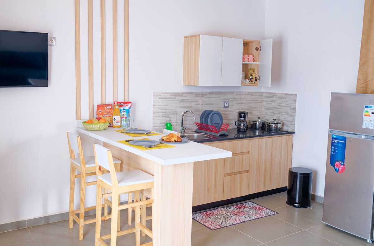 ಉಷ್ಣವಲಯದ ಉದ್ಯಾನವನ್ನು ನೋಡುವ ಖಾಸಗಿ ಟೆರೇಸ್/ಬಾಲ್ಕನಿಯನ್ನು ಹೊಂದಿರುವ ಆಧುನಿಕ ಮತ್ತು ಪ್ರಕಾಶಮಾನವಾದ ಸ್ಟುಡಿಯೋ. ಅನಿಯಮಿತ ಹೈ-ಸ್ಪೀಡ್ ಇಂಟರ್ನೆಟ್, 24/7 ನೀರು ಮತ್ತು ವಿದ್ಯುತ್, IPTV ಚಾನಲ್ಗಳೊಂದಿಗೆ ಸ್ಮಾರ್ಟ್ ಟಿವಿ. ಫ್ರಿಜ್-ಫ್ರೀಜರ್, ಮೈಕ್ರೊವೇವ್, ಕಾಫಿ ಮೇಕರ್, ಕೆಟಲ್, ಗ್ಯಾಸ್ ಮತ್ತು ಪಾತ್ರೆಗಳೊಂದಿಗೆ ಸಂಪೂರ್ಣ ಅಡುಗೆಮನೆ ಸಜ್ಜುಗೊಂಡಿದೆ. ವಿಮಾನ ನಿಲ್ದಾಣಕ್ಕೆ ಹತ್ತಿರ, ನಡಿಗೆ ದೂರದಲ್ಲಿ ಸೂಪರ್ಮಾರ್ಕೆಟ್ ಮತ್ತು ಸ್ಥಳೀಯ ಮಾರುಕಟ್ಟೆ. ಶಾಂತ, ಸುರಕ್ಷಿತ, ದೀರ್ಘಾವಧಿಯ ವಾಸ್ತವ್ಯಕ್ಕೆ ಸೂಕ್ತವಾಗಿದೆ. ಅಗತ್ಯ ಸೌಲಭ್ಯಗಳಿಗೆ ಹತ್ತಿರವಾಗಿ ಕೆಲಸ ಮಾಡಲು, ವಿಶ್ರಾಂತಿ ಪಡೆಯಲು ಮತ್ತು ಆರಾಮದಾಯಕ ಮತ್ತು ಅನುಕೂಲಕರ ವಾಸ್ತವ್ಯವನ್ನು ಆನಂದಿಸಲು ಸೂಕ್ತವಾಗಿದೆ