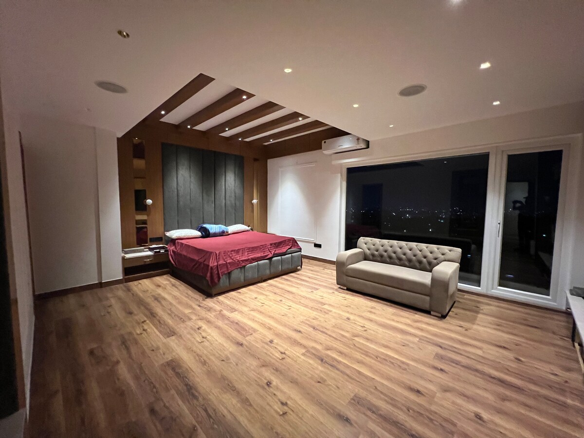 ಈ ವಿಶಾಲವಾದ ಮತ್ತು ವಿಶಿಷ್ಟ ಸ್ಥಳದಲ್ಲಿ ಇಡೀ ಗುಂಪು ಆರಾಮದಾಯಕವಾಗಿರುತ್ತದೆ. ಪೆಂಟ್ಹೌಸ್ ನಗರದ 3 ಬೆಡ್ರೂಮ್ನ ಹೃದಯಭಾಗದಲ್ಲಿದೆ, ಒಂದು ಬದಿಯಲ್ಲಿ ಹಿಮಾಲಯನ್ ನೋಟ ಮತ್ತು ಇನ್ನೊಂದು ಬದಿಯಲ್ಲಿ ನಗರದ ನೋಟವಿದೆ, ಎಲ್ಲಾ ರೂಮ್ಗಳು 8 ನೇ ಮಹಡಿಯಲ್ಲಿರುವ ಸೂಟ್ ರೂಮ್ನಂತೆ ದೊಡ್ಡದಾಗಿವೆ ಮತ್ತು ನಾವು ತಂದೂರಿ ತಿಂಡಿಗಳೊಂದಿಗೆ ಬಾಣಸಿಗರನ್ನು ಒದಗಿಸುತ್ತೇವೆ, ಇದನ್ನು ಹೊಸದಾಗಿ ನಿರ್ಮಿಸಲಾದ ಸ್ವಯಂಚಾಲಿತ ಪೆಂಟ್ಹೌಸ್ನೊಂದಿಗೆ ಪ್ರತಿ ರೂಮ್ನಲ್ಲಿ ಸಂಗೀತದೊಂದಿಗೆ ಶುಲ್ಕ ವಿಧಿಸಬಹುದಾದ ಆಧಾರದ ಮೇಲೆ ಲಭ್ಯವಿದೆ.