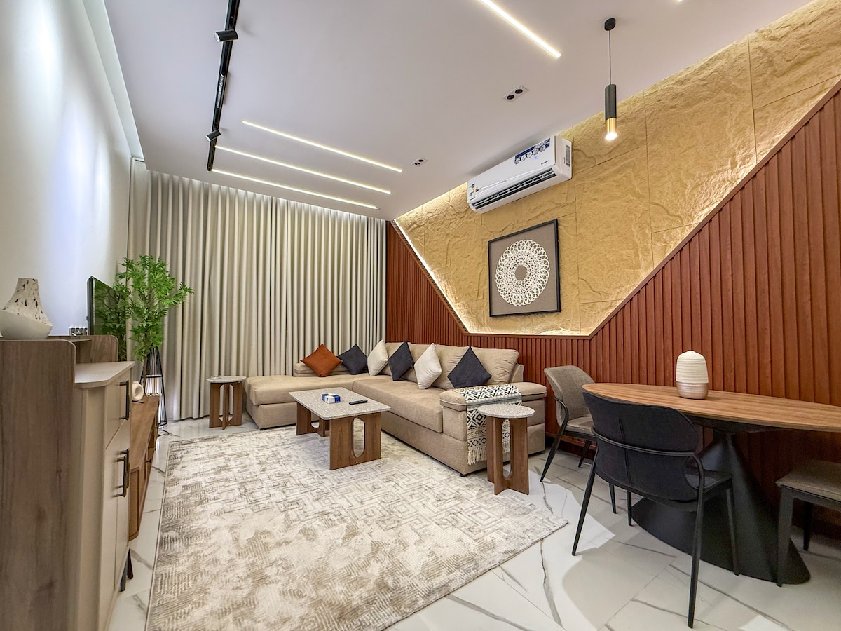ಈ ವಿಶಿಷ್ಟ ನಿವಾಸವು ತನ್ನದೇ ಆದ ಶೈಲಿಯನ್ನು ಹೊಂದಿದೆ ಮತ್ತು ಅಲ್-ರಾಧಾ ನೆರೆಹೊರೆಯಲ್ಲಿ ಐಷಾರಾಮಿ ಸೂಟ್ ಆಗಿದೆ – ಜೆಡ್ಡಾ ಅಸಾಧಾರಣ ವಸತಿ ಅನುಭವವನ್ನು ಆನಂದಿಸುತ್ತದೆ, ಅದು ನಿಮಗೆ ಅತ್ಯುನ್ನತ ಮಟ್ಟದ ಗೌಪ್ಯತೆಯನ್ನು ನೀಡುತ್ತದೆ, ಕಟ್ಟಡ ಮತ್ತು ಐಷಾರಾಮಿ ಪೀಠೋಪಕರಣಗಳನ್ನು ಹೊಂದಿರುವ ಘಟಕವನ್ನು ಸ್ವಯಂ-ಸೂಚಿಸುತ್ತದೆ. ಸೂಟ್ ಆನಂದವನ್ನು ವೀಕ್ಷಿಸಲು ಸ್ಮಾರ್ಟ್ ಸ್ಕ್ರೀನ್, ಉಚಿತ ಹೈ-ಸ್ಪೀಡ್ ವೈಫೈ ಮತ್ತು ಅಡುಗೆಮನೆಯನ್ನು ಹೊಂದಿದೆ, ಚೌಕದ ಪಕ್ಕದಲ್ಲಿ ಮತ್ತು ಪ್ರಮುಖ ವಾಣಿಜ್ಯ ಮತ್ತು ಉತ್ಸಾಹಭರಿತ ಕೇಂದ್ರಗಳಿಗೆ ಹತ್ತಿರವಿರುವ ಕಾರ್ಯತಂತ್ರದ ಸ್ಥಳವನ್ನು ಹೊಂದಿದೆ, ಇದು ಜೆಡ್ಡಾದ ಹೃದಯಭಾಗದಲ್ಲಿರುವ ಐಷಾರಾಮಿ, ಆರಾಮ ಮತ್ತು ಆಧುನಿಕ ಜೀವನವನ್ನು ಸಂಯೋಜಿಸುತ್ತದೆ.