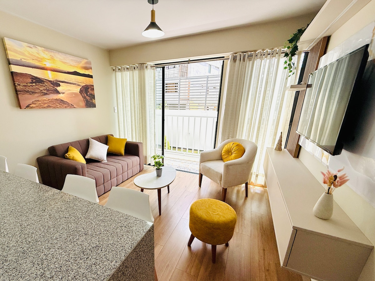 ವಿಹಂಗಮ ನೋಟವನ್ನು ಹೊಂದಿರುವ ಜೀಸಸ್ ಮಾರಿಯಾದಲ್ಲಿ ವಿಶೇಷ ಸೂಟ್, ವಿಶ್ರಾಂತಿ ಪಡೆಯಲು ಅಥವಾ ಕೆಲಸ ಮಾಡಲು ಸೂಕ್ತವಾಗಿದೆ. ಸುಸಜ್ಜಿತ ಅಡುಗೆಮನೆ, ವೇಗದ ವೈ-ಫೈ ಹೊಂದಿರುವ ಡೆಸ್ಕ್, ಸ್ಮಾರ್ಟ್ ಟಿವಿ, ವಾಷರ್/ಡ್ರೈಯರ್ ಮತ್ತು ಹೋಟೆಲ್-ಶೈಲಿಯ ಕ್ವೀನ್ ಬೆಡ್. ಸ್ಟಾರ್ಬಕ್ಸ್, ಲಿಮಾ ಚೇಂಬರ್ ಆಫ್ ಕಾಮರ್ಸ್, ಯು. ಪೆಸಿಫಿಕ್, ಉದ್ಯಾನವನಗಳು, ಔಷಧಾಲಯಗಳು, ಶಾಪಿಂಗ್ ಮಾಲ್ ಮತ್ತು ಕಟ್ಟಡದಲ್ಲಿ ಮಾರುಕಟ್ಟೆಯೊಂದಿಗೆ ಇರುವ ಮೆಟ್ಟಿಲುಗಳು. ಹಣಕಾಸು ಪ್ರದೇಶಗಳಿಗೆ ಸುಲಭ ಪ್ರವೇಶ. ಆನಂದದ ಟ್ರಿಪ್ಗಳು, ಕೆಲಸ ಅಥವಾ ದೀರ್ಘಾವಧಿಯ ವಾಸ್ತವ್ಯಗಳಿಗೆ ಸೂಕ್ತವಾಗಿದೆ. ನಿರಾತಂಕದ, ಆರಾಮದಾಯಕ ಅನುಭವಕ್ಕಾಗಿ ಸುಲಭ ಪ್ರವೇಶ ಮತ್ತು 24/7 ಭದ್ರತೆ.