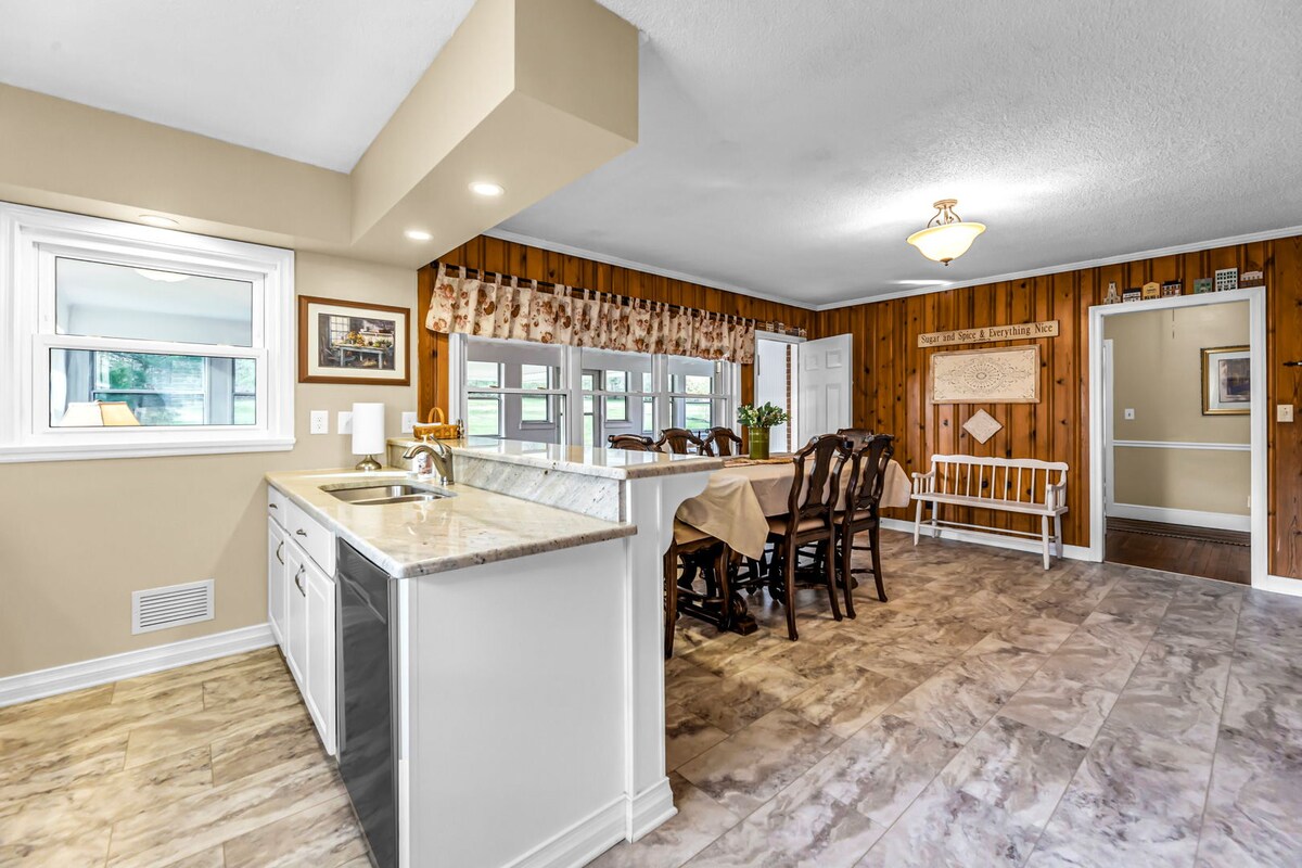 ಆಹ್ಲಾದಕರ ಮತ್ತು ಆರಾಮದಾಯಕವಾದ ಮನೆಯು ಸಾಕಷ್ಟು ವಾಸಿಸುವ ಪ್ರದೇಶ ಮತ್ತು ಶಾಂತಿಯುತ ಸ್ಥಳಗಳನ್ನು ಹೊಂದಿದೆ. ನೀವು ನವೀಕರಿಸಿದ ಅಡುಗೆಮನೆ, ಆರಾಮದಾಯಕ ಸನ್ರೂಮ್ ಮತ್ತು ದೊಡ್ಡ ಅಂಗಳವನ್ನು ಇಷ್ಟಪಡುತ್ತೀರಿ. ಗ್ರಾಮೀಣ ಪ್ರದೇಶದಲ್ಲಿ ಇನ್ನೂ ಅಗತ್ಯಗಳಿಗೆ ಹತ್ತಿರದಲ್ಲಿದೆ, ಹೆದ್ದಾರಿ, ರೆಸ್ಟೋರೆಂಟ್ಗಳು ಮತ್ತು ಶಾಪಿಂಗ್ಗೆ ಕೇವಲ ಒಂದು ಸಣ್ಣ (6 ನಿಮಿಷಗಳು) ಡ್ರೈವ್ ಮಾಡಿ. ಸುಂದರವಾಗಿ ನವೀಕರಿಸಿದ ಈ ಮನೆಯನ್ನು ದೀರ್ಘಾವಧಿಯ ಗೆಸ್ಟ್ಗಳಿಗಾಗಿ ಸಜ್ಜುಗೊಳಿಸಲಾಗಿದೆ. ಸಂಪೂರ್ಣವಾಗಿ ಸಂಗ್ರಹವಾಗಿರುವ ಅಡುಗೆಮನೆ, ವಾಷರ್ ಮತ್ತು ಡ್ರೈಯರ್, ಆರಾಮದಾಯಕ ಪೀಠೋಪಕರಣಗಳು, ಹೈ ಸ್ಪೀಡ್ ಇಂಟರ್ನೆಟ್ ಮತ್ತು ಕೇಬಲ್ ಟೆಲಿವಿಷನ್ ಅನ್ನು ಒಳಗೊಂಡಿದೆ.
