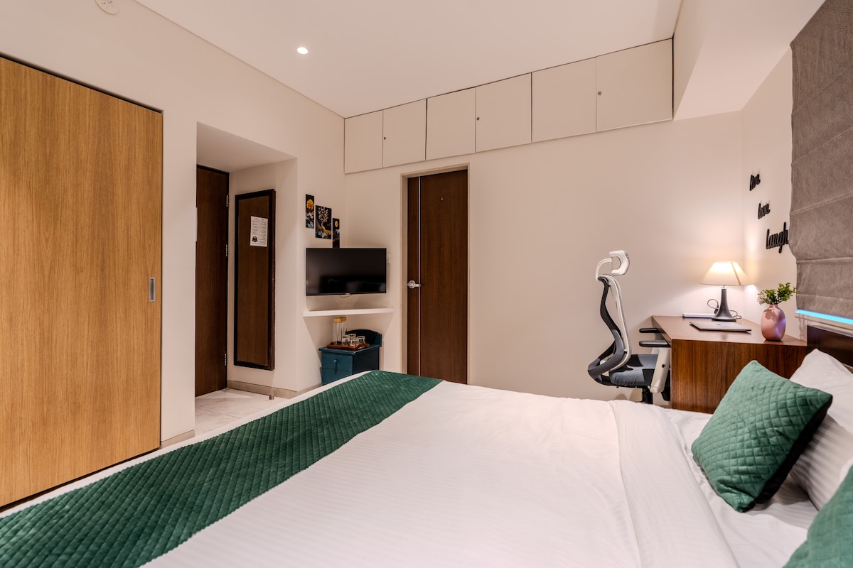 ವಿಮಾನ ನಿಲ್ದಾಣದಿಂದ ಸ್ವಲ್ಪ ದೂರದಲ್ಲಿರುವ ಸೊಗಸಾದ 1RK ಅಪಾರ್ಟ್ಮೆಂಟ್ ಆಗಿರುವ ಲಿವಾರಾಕ್ಕೆ ಸುಸ್ವಾಗತ. ಏಕಾಂಗಿ ಪ್ರಯಾಣಿಕರು, ದಂಪತಿಗಳು ಅಥವಾ ವ್ಯವಹಾರದ ಗೆಸ್ಟ್ಗಳಿಗೆ ಸೂಕ್ತವಾಗಿದೆ, ಇದು ಆರಾಮ ಮತ್ತು ಅನುಕೂಲತೆಯ ಮಿಶ್ರಣವನ್ನು ನೀಡುತ್ತದೆ. ಆರಾಮದಾಯಕ ವಾಸ್ತವ್ಯಕ್ಕಾಗಿ ವೇಗದ ವೈ-ಫೈ, ಹವಾನಿಯಂತ್ರಿತ ಆರಾಮದಾಯಕ ಮತ್ತು ಸ್ಮಾರ್ಟ್ ಮನರಂಜನೆಯನ್ನು ಆನಂದಿಸಿ. ಚಿಂತನಶೀಲವಾಗಿ ವಿನ್ಯಾಸಗೊಳಿಸಲಾದ ಒಳಾಂಗಣಗಳು ಮತ್ತು ಪ್ರೈವೇಟ್ ಬಾಲ್ಕನಿ ಕಾರ್ಯನಿರತ ದಿನದ ನಂತರ ವಿಶ್ರಾಂತಿ ಪಡೆಯಲು ಸೂಕ್ತವಾದ ಸ್ಥಳವನ್ನು ಸೃಷ್ಟಿಸುತ್ತವೆ. ಲಿವಾರಾದಲ್ಲಿ, ನಿಮಗೆ ಅಗತ್ಯವಿರುವ ಎಲ್ಲದಕ್ಕೂ ಹತ್ತಿರದಲ್ಲಿರುವಾಗ ನೀವು ಮನೆಯಲ್ಲಿಯೇ ಇರುತ್ತೀರಿ.