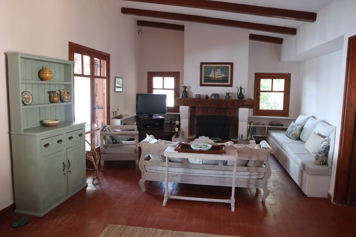 ಸ್ಕಿಯಾಥೋಸ್ ಪಟ್ಟಣದ ಹೃದಯಭಾಗದಲ್ಲಿರುವ ಸುಂದರವಾದ ರತ್ನವಾದ ಕಾಸ್ಮಿಮಾಕ್ಕೆ ಸುಸ್ವಾಗತ. ಎಚ್ಚರಿಕೆಯಿಂದ ಪುನಃಸ್ಥಾಪಿಸಲಾದ ಈ ವಿಶಿಷ್ಟ ಮನೆ ಎರಡೂ ಬಂದರುಗಳಿಂದ 150 ಮೀಟರ್ ದೂರದಲ್ಲಿದೆ, ಅಂಗಡಿಗಳು, ಬಾರ್ಗಳು ಮತ್ತು ರೆಸ್ಟೋರೆಂಟ್ಗಳಿಗೆ ಹತ್ತಿರದಲ್ಲಿದೆ. ಅದರ ಖಾಸಗಿ ಅಂಗಳದೊಂದಿಗೆ ನೀವು ಆರಾಮವಾಗಿ ವಿಶ್ರಾಂತಿ ಪಡೆಯಬಹುದು. ಕಾಸ್ಮಿಮಾ 2 ಡಬಲ್ ಬೆಡ್ರೂಮ್ಗಳು ಮತ್ತು 2 ಬಾತ್ರೂಮ್ಗಳೊಂದಿಗೆ 4 ಮಲಗುತ್ತಾರೆ. ಸಂಪೂರ್ಣವಾಗಿ ಅಳವಡಿಸಲಾದ ಅಡುಗೆಮನೆ ಮತ್ತು ಬ್ರೇಕ್ಫಾಸ್ಟ್ ಬಾರ್. ಇದು ಹಳೆಯ ಮನೆ ಮತ್ತು ನೆಲ ಮಹಡಿಯಲ್ಲಿ ಕಡಿಮೆ ಛಾವಣಿಗಳಿವೆ, ಆದ್ದರಿಂದ ಎತ್ತರದ ಜನರು ಮೇಲಿನ ಮಲಗುವ ಕೋಣೆಗೆ ಹೆಚ್ಚು ಸೂಕ್ತವಾಗಿರಬಹುದು. ಮನೆಯು A/C, ವೈಫೈ ಮತ್ತು ಯುಎಸ್ಬಿ ಚಾರ್ಜಿಂಗ್ ಪಾಯಿಂಟ್ಗಳನ್ನು ಹೊಂದಿದೆ.