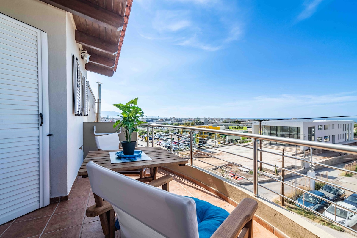 ಮಾರ್ವಾ ಅಪಾರ್ಟ್ಮೆಂಟ್ ವಿಮಾನ ನಿಲ್ದಾಣಕ್ಕೆ ಹತ್ತಿರವಿರುವ ನವೀಕರಿಸಿದ ಅಪಾರ್ಟ್ಮೆಂಟ್ ಆಗಿದ್ದು, ವಿಶ್ರಾಂತಿ ಸಮಯ ಮತ್ತು ಅವರಿಗೆ ಎಲ್ಲಾ ಸೌಲಭ್ಯಗಳನ್ನು ಒದಗಿಸುವ ಸ್ಥಳವನ್ನು ಸ್ವಾಗತಿಸಲು ಸಂಪೂರ್ಣವಾಗಿ ಆಯೋಜಿಸಲಾಗಿದೆ. ಈ ಸ್ಥಳವು ಸೂಕ್ತವಾಗಿದೆ ಏಕೆಂದರೆ ಇದು ವಿಮಾನ ನಿಲ್ದಾಣದ ಮಧ್ಯದಲ್ಲಿ ಸುಮಾರು 10 ನಿಮಿಷಗಳು ಕಾಲ್ನಡಿಗೆಯಲ್ಲಿ ಮತ್ತು 8 ನಿಮಿಷಗಳ ಕಾಲ ಹೆರಾಕ್ಲಿಯನ್ ಕೇಂದ್ರದಿಂದ ಕಾರಿನಲ್ಲಿದೆ. ನೀವು ಒಂದೇ ಸಮಯದಲ್ಲಿ ಸಮುದ್ರ ಮತ್ತು ಪರ್ವತಗಳನ್ನು ಆನಂದಿಸಬಹುದಾದ ಬಾಲ್ಕನಿಯಿಂದ ನೋಟವನ್ನು ನೀವು ಇಷ್ಟಪಡುತ್ತೀರಿ.