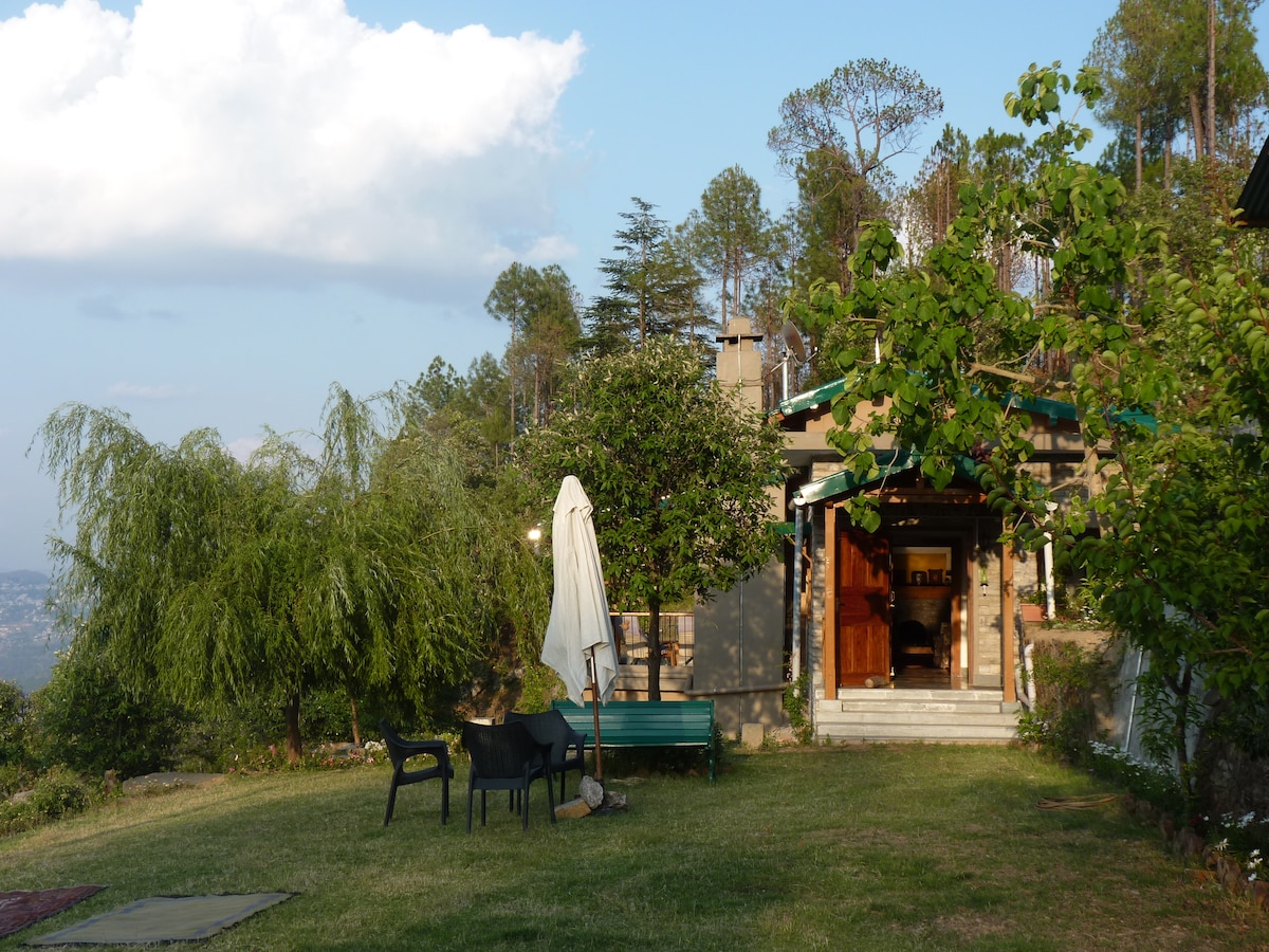 ನಮ್ಮ ಮನೆಯನ್ನು ಇಂಟೀರಿಯರ್ಸ್ ನಿಯತಕಾಲಿಕೆ ‘ಇನ್ಸೈಡ್ ಔಟ್ಸೈಡ್‘ ನಲ್ಲಿ ಪ್ರದರ್ಶಿಸಲಾಗಿದೆ. ಅದರಿಂದ ದೂರವಿರಿ ಮತ್ತು ಜನಸಂದಣಿಯಿಂದ ದೂರವಿರಿ. ಪ್ರತಿ ರೂಮ್ನಿಂದ ಕಣಿವೆ ಮತ್ತು ಬೆರಗುಗೊಳಿಸುವ ಕುಮಾವುನ್ ಶಿಖರಗಳ ವೀಕ್ಷಣೆಗಳನ್ನು ಆನಂದಿಸಿ. ಇದು ಡೇ ಡ್ರೀಮರ್ಗಳು, ಪ್ರಕೃತಿ ಪ್ರೇಮಿಗಳು, ಪಕ್ಷಿ ವೀಕ್ಷಕರಿಗೆ ರಿಟ್ರೀಟ್ ಆಗಿದೆ. ಮನೆಯಲ್ಲಿ ಟಿವಿ ಇಲ್ಲ. ಸುಂದರವಾದ ಅರಣ್ಯ ನಡಿಗೆಗಳು ಮತ್ತು ಪ್ರಕೃತಿಯಲ್ಲಿ ಸಮಯ ಕಳೆಯುವುದು ನಿಮಗೆ ಬೇಕಾಗಿರುವುದು! ಪಕ್ಷಿಗಳ ಶಬ್ದಕ್ಕೆ ಎಚ್ಚರಗೊಳ್ಳಿ ಮತ್ತು ಅದ್ಭುತ ಸೂರ್ಯೋದಯಕ್ಕಾಗಿ ಪೂರ್ವಕ್ಕೆ ನೋಡಿ! ಶಿಶುಗಳಿಗೆ ಮತ್ತು ಕಿರಿಯ ಮಕ್ಕಳಿಗೆ ಸೂಕ್ತವಲ್ಲ.