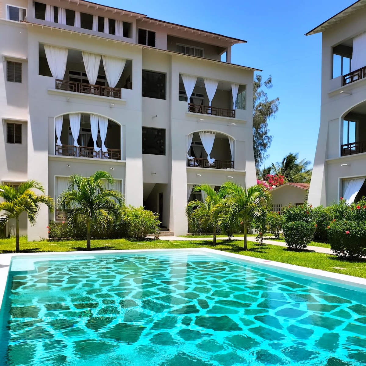 ಈ ಶಾಂತ, ಸೊಗಸಾದ ಸ್ಥಳದಲ್ಲಿ ಹಿಂತಿರುಗಿ ಮತ್ತು ವಿಶ್ರಾಂತಿ ಪಡೆಯಿರಿ. 5 ಸ್ಟಾರ್ ಬೀಚ್ ರೆಸಾರ್ಟ್ ಮತ್ತು ಸ್ಪಾ ಹೊಂದಿರುವ ಅದೇ ಕಾಂಪೌಂಡ್ನೊಳಗೆ ರುಚಿಕರವಾಗಿ ಸಜ್ಜುಗೊಳಿಸಲಾದ 1 ಮಲಗುವ ಕೋಣೆ ಕಡಲತೀರದ ವಿಲ್ಲಾ ಶೈಲಿಯ ಅಪಾರ್ಟ್ಮೆಂಟ್. ಚೆನ್ನಾಗಿ ಅಂದಗೊಳಿಸಿದ ಹುಲ್ಲುಹಾಸು, ಸೊಗಸಾದ ಉದ್ಯಾನ, ರೆಸಾರ್ಟ್ ಸೌಲಭ್ಯಗಳು ಮತ್ತು ಯಾವುದೇ ಕಡಲತೀರದ ಮಾರಾಟದ ಜನರೊಂದಿಗೆ ಸ್ತಬ್ಧ ಕಡಲತೀರದಿಂದ ಸುತ್ತುವರೆದಿರುವ ಈ ಸ್ಥಳದ ಪ್ರಶಾಂತತೆಯನ್ನು ಆನಂದಿಸಿ. ಮಾಲಿಂಡಿ ಅಂತರರಾಷ್ಟ್ರೀಯ ವಿಮಾನ ನಿಲ್ದಾಣದಿಂದ ಕೇವಲ 10 ನಿಮಿಷಗಳ ದೂರದಲ್ಲಿದೆ ಮತ್ತು ರೆಸ್ಟೋರೆಂಟ್ಗಳು, ಮನರಂಜನಾ ತಾಣಗಳು ಮತ್ತು ಶಾಪಿಂಗ್ ಕೇಂದ್ರಕ್ಕೆ ಹತ್ತಿರದಲ್ಲಿದೆ.