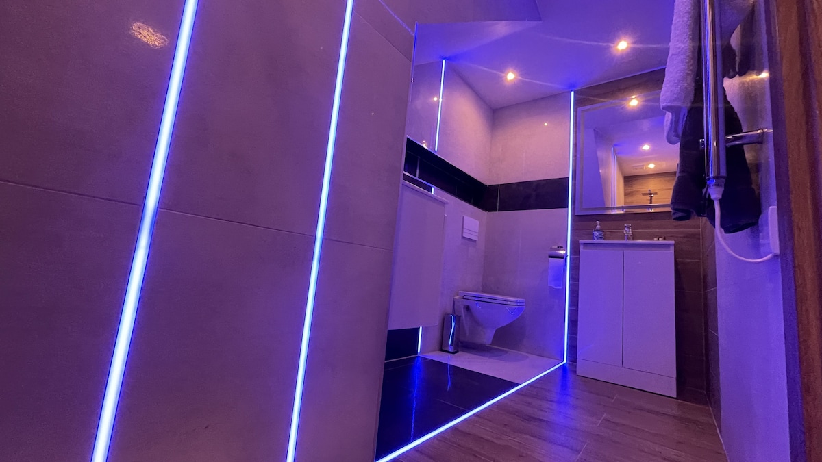 ವಿಶಾಲವಾದ ಲಿವಿಂಗ್ ರೂಮ್, ಸಂಪೂರ್ಣ ಸುಸಜ್ಜಿತ ಅಡುಗೆಮನೆ ಮತ್ತು ಡೈನಿಂಗ್ ರೂಮ್, ಐಷಾರಾಮಿ ಕಿಂಗ್ ಗಾತ್ರದ ಹಾಸಿಗೆ ಹೊಂದಿರುವ ಸುಂದರವಾದ ಮಲಗುವ ಕೋಣೆ; ಹೈ ಸ್ಪೀಡ್ ಇಂಟರ್ನೆಟ್, ಐರ್ ಟಿವಿ ಜೊತೆಗೆ ನೆಟ್ಫ್ಲಿಕ್ಸ್ ಮತ್ತು ಬ್ಯಾಕ್ ಗಾರ್ಡನ್ ಹೊಂದಿರುವ ಪ್ರೈವೇಟ್ ಅಪಾರ್ಟ್ಮೆಂಟ್. ಮನೆಯಿಂದ ಕೆಲಸ ಮಾಡಲು ಸೂಕ್ತವಾಗಿದೆ. ಉತ್ತಮ ಅಂಗಡಿಗಳು, ರೆಸ್ಟೋರೆಂಟ್ಗಳು, ಪಬ್ಗಳು ಮತ್ತು ರಮಣೀಯ ಆಕರ್ಷಣೆಗಳೊಂದಿಗೆ ಪಟ್ಟಣಕ್ಕೆ 10 ನಿಮಿಷಗಳ ನಡಿಗೆ. ಸ್ನೇಹಪರ ನೆರೆಹೊರೆ; ಮುಂಭಾಗದಲ್ಲಿ ಸುಂದರವಾದ ಉದ್ಯಾನವನ; ನಾಯಿ ವಾಕಿಂಗ್ಗೆ ಜನಪ್ರಿಯವಾಗಿದೆ.