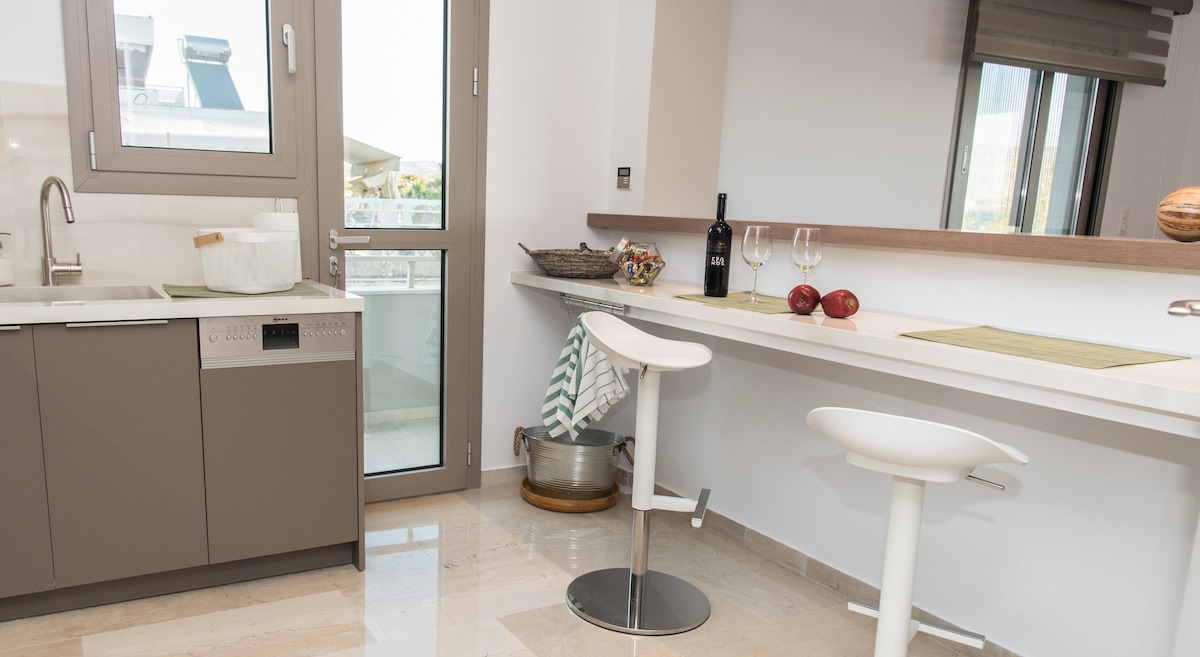 ಅಥೆನ್ಸ್ ವಿಮಾನ ನಿಲ್ದಾಣದಿಂದ ಕೇವಲ 8 ನಿಮಿಷಗಳ ದೂರದಲ್ಲಿರುವ ನಿಜವಾದ ವಿಶಿಷ್ಟ ರಾಯಲ್-ಶೈಲಿಯ ಪೆಂಟ್ಹೌಸ್. ಪ್ರೈವೇಟ್ ಮ್ಯೂಸಿಯಂನಂತೆ, ಇದು ಪ್ರಾಚೀನ ವಸ್ತುಗಳು, ಗಾತ್ರದ 200×220 ಹಾಸಿಗೆಗಳು, ದೊಡ್ಡ ಪ್ರೈವೇಟ್ ಟೆರೇಸ್ ಮತ್ತು ವಿಹಂಗಮ ವೀಕ್ಷಣೆಗಳು ಮತ್ತು ವಿಮಾನದ ಚುಕ್ಕೆಗಳಿಗಾಗಿ ಮೇಲ್ಛಾವಣಿಗೆ ಪ್ರವೇಶವನ್ನು ಹೊಂದಿದೆ. ಸಾಕಷ್ಟು ಸ್ಥಳಾವಕಾಶ ಮತ್ತು ಪಾತ್ರವನ್ನು ಹೊಂದಿರುವ ಕುಟುಂಬಗಳಿಗೆ ಸೂಕ್ತವಾಗಿದೆ, ಈ ಪ್ರದೇಶದಲ್ಲಿ ನೀವು ಬೇರೆಲ್ಲಿಯೂ ಕಾಣುವುದಿಲ್ಲ. ಗಾಜಿನ ಬಾಗಿಲುಗಳು ನೈಸರ್ಗಿಕ ಬೆಳಕಿನಿಂದ ಸ್ಥಳವನ್ನು ಪ್ರವಾಹಕ್ಕೆ ತಳ್ಳುತ್ತವೆ ಮತ್ತು ತೆರೆದ ಆಕಾಶವನ್ನು ರೂಪಿಸುತ್ತವೆ — ಅಪರೂಪದ ನಗರ ವೀಕ್ಷಣೆಗಳೊಂದಿಗೆ ಕ್ಲಾಸಿಕ್ ಮೋಡಿ ಮಾಡುವ ಒಂದು ರೀತಿಯ ವಾಸ್ತವ್ಯ.