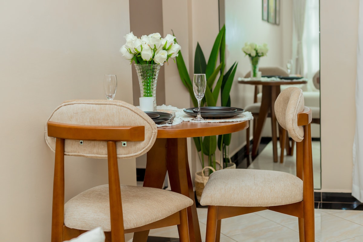 Welcome to your cozy home away from home. Located in kiwatule ntinda on the main road,minutes away from the nothern bypass and metroplex mall with restaurants supermarkets ,spas & bars. Whether your visiting for business or a romantic getaway, this space offers everything you need for a calm and enjoyable stay. The apartment offers a place to cook, work and 2 blaconies with a lovely view. The bedroom features a plush bed with soft lines and calming colours perfect for restful nights