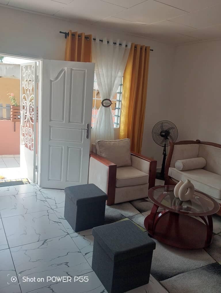 Maison située à Nziou à Kribi à 80m de la mer. Maison avec 3 chambres. 2 salles de bain dont une suite parentale. Grand jardin avec parking . Terrasse couverte avec salon de jardin. Espace détente extérieur. Gardien et gouvernante sur place. Climatisation. Modem wifi à votre disposition à recharger. 1.5 km du centre ville. Possibilité d'une 4ème chambre grâce au logement au dessus avec supplément. Soit 8 couchages au total.