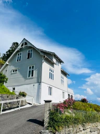ಫ್ಜಾರ್ಡ್ನ ಸುಂದರವಾದ ಸ್ಥಳವನ್ನು ಹೊಂದಿರುವ ಆಕರ್ಷಕ, ಕ್ಲಾಸಿಕ್ ಮನೆ. ಮಧ್ಯದಲ್ಲಿದೆ, ಸೇತುವೆಯ ಅಡ್ಡಲಾಗಿ ಡೌನ್ಟೌನ್ ನಾರ್ಹೈಮ್ಸಂಡ್ಗೆ ಕೇವಲ ಒಂದು ಸಣ್ಣ ನಡಿಗೆ ಇದೆ. ನೀವು ಫ್ಜಾರ್ಡ್, ಪರ್ವತಗಳು ಮತ್ತು ಸುಂದರವಾದ ಫೋಲ್ಜ್ಫೋನಾ ಹಿಮನದಿಯ ನೋಟವನ್ನು ಪಡೆಯುತ್ತೀರಿ. ಮನೆಯು 3 ಬೆಡ್ರೂಮ್ಗಳು, 2 ಬಾತ್ರೂಮ್ಗಳು, 1 ಲಿವಿಂಗ್ ರೂಮ್ ಮತ್ತು ಅಡುಗೆಮನೆಯೊಂದಿಗೆ 3 ಮಹಡಿಗಳನ್ನು ಹೊಂದಿದೆ. ಇಲ್ಲಿಂದ ಹಾರ್ಡೇಂಜರ್ ಅನ್ನು ಅನ್ವೇಷಿಸಿ, ಹೈಕಿಂಗ್ಗೆ ಹೋಗುವುದು, ಫ್ಜಾರ್ಡ್ನಲ್ಲಿ ಈಜುವುದು ಅಥವಾ ವಿಶ್ರಾಂತಿ ಪಡೆಯುವುದು. ಚಳಿಗಾಲದಲ್ಲಿ ನಾವು ಹತ್ತಿರದ Kvamskogen ಅಥವಾ Sjusete ನಲ್ಲಿ ಸ್ಕೀಯಿಂಗ್ ಮಾಡಲು ಶಿಫಾರಸು ಮಾಡುತ್ತೇವೆ. ವೈಫೈ ಮತ್ತು Google TV ಲಭ್ಯವಿದೆ