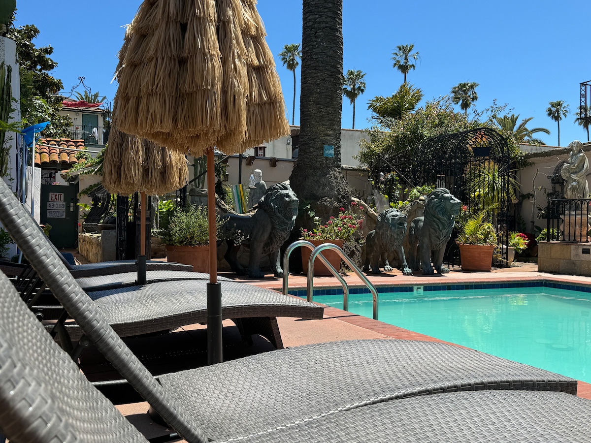 ಕಡಲತೀರದಿಂದ ಅಡ್ಡಲಾಗಿ ಬಾಲ್ಕನಿಯಲ್ಲಿ ನೀವು ವಿಶ್ರಾಂತಿ ಪಡೆಯುತ್ತಿರುವಾಗ ಅಲೆಗಳನ್ನು ಆಲಿಸಿ. ಈ ಸ್ಟುಡಿಯೋ ಆದರ್ಶಪ್ರಾಯವಾಗಿ ಇದೆ, ಮರುರೂಪಿಸಲಾಗಿದೆ ಮತ್ತು ಹೊಳೆಯುವ ಸ್ವಚ್ಛವಾಗಿದೆ. ಕಡಲತೀರಕ್ಕೆ ಅಥವಾ ಅನೇಕ ಆಕರ್ಷಕ ಅಂಗಡಿಗಳು, ರೆಸ್ಟೋರೆಂಟ್ಗಳು ಮತ್ತು ಬ್ರೂಪಬ್ಗಳಿಗೆ ಹೋಗಿ. ನೀವು ಪೂಲ್ ಅಥವಾ ಹಾಟ್ ಟಬ್ನಲ್ಲಿ ಈಜುವಾಗ BBQ. ಸ್ಟುಡಿಯೋವು ರಾಣಿ ಗಾತ್ರದ ಮರ್ಫಿ ಹಾಸಿಗೆ ಹೊಂದಿರುವ ಪ್ರೈವೇಟ್ ಮುಖ್ಯ ರೂಮ್ ಅನ್ನು ಹೊಂದಿದೆ, 2 xtr ಉದ್ದದ ಅವಳಿ ಹಾಸಿಗೆಗಳನ್ನು ಹೊಂದಿರುವ ಬಂಕ್ ಪ್ರದೇಶವನ್ನು ಪ್ರತ್ಯೇಕಿಸುವ ಬಾಗಿಲು ಹೊಂದಿದೆ. ವೇಗದ ವೈಫೈ. EV ಚಾರ್ಜರ್ಗಳೊಂದಿಗೆ ಗೇಟೆಡ್ ಪಾರ್ಕಿಂಗ್. ದೀರ್ಘಾವಧಿಯ ವಾಸ್ತವ್ಯಗಳನ್ನು ಸ್ವಾಗತಿಸಲಾಗುತ್ತದೆ. ಲೈಸೆನ್ಸ್ #1210-VR-21. TOT ನಗರ ತೆರಿಗೆ CMC14.47.080 ಯಾವುದೇ ಸಾಕುಪ್ರಾಣಿ ನೀತಿ ಇಲ್ಲ