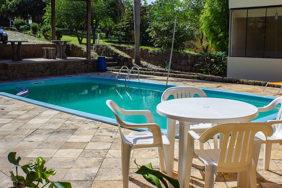ನಮ್ಮ ಮನೆಗೆ ಸುಸ್ವಾಗತ! ನಮ್ಮ ಗೆಸ್ಟ್ಗಳು ಆರಾಮವಾಗಿರಲು ಮತ್ತು ನಮ್ಮ ಸ್ಥಳ ಮತ್ತು ಫ್ಲೋರಿಪಾದ ಕಡಲತೀರಗಳಿಂದ ಸುರಕ್ಷಿತವಾಗಿ ಮತ್ತು ಆರಾಮವಾಗಿ ಆನಂದಿಸಲು ನಿರ್ಮಿಸಲಾದ ಟೌನ್ಹೌಸ್. ಮನೆ ಇರುವ ಪ್ರಿಯಾ ಡೊ ಸ್ಯಾಂಟಿನ್ಹೋವನ್ನು ಬ್ರೆಜಿಲ್ನ ಸ್ವಚ್ಛ ಕಡಲತೀರಗಳಲ್ಲಿ ಒಂದಾಗಿದೆ ಎಂದು ಗುರುತಿಸಲಾಗಿದೆ! ನಾವು ಇಂಗ್ಲಿಷ್ನ ಕಡಲತೀರಕ್ಕೆ ಹತ್ತಿರದಲ್ಲಿದ್ದೇವೆ. ರೆಸಾರ್ಟ್ ಕೋಸ್ಟಾವೊ ಡೊ ಸ್ಯಾಂಟಿನ್ಹೋದಲ್ಲಿ ಈವೆಂಟ್ಗಳ ಸಮಯದಲ್ಲಿ ವಸತಿಗಾಗಿ ಹುಡುಕುತ್ತಿರುವವರಿಗೆ ಈ ನಿವಾಸವು ಸೂಕ್ತವಾಗಿದೆ. ಸ್ಮರಣೀಯ ವಾಸ್ತವ್ಯಕ್ಕಾಗಿ ನಾವು ಸಂಪೂರ್ಣ, ಸುರಕ್ಷಿತ, ಸ್ವಚ್ಛ ಮತ್ತು ಆರಾಮದಾಯಕ ಮನೆಯನ್ನು ನೀಡುತ್ತೇವೆ.