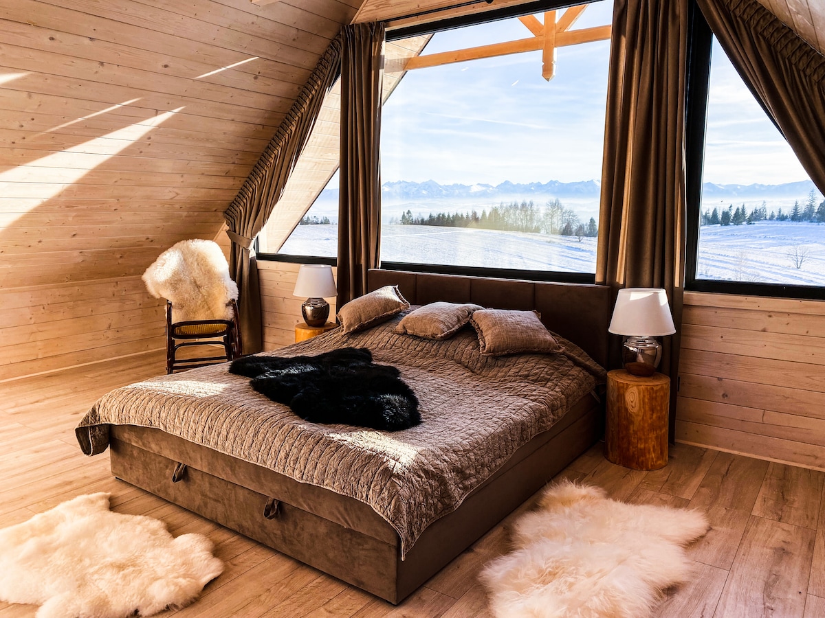 HONAY HOUSE is a cozy and modern cottage with a stunning and unique view of the High Tatra Mountains. Our house is perfectly crafted for everyone who is searching for wild nature, active recreation or just a refuge from the crowded resorts of Podhale. It`s a peaceful location. As a designers we took care of every detail to let you experience a high-quality interior that is extremely natural and warm. Outside the house you can also enjoy wooden chill deck. Welcome to stay on our hill.