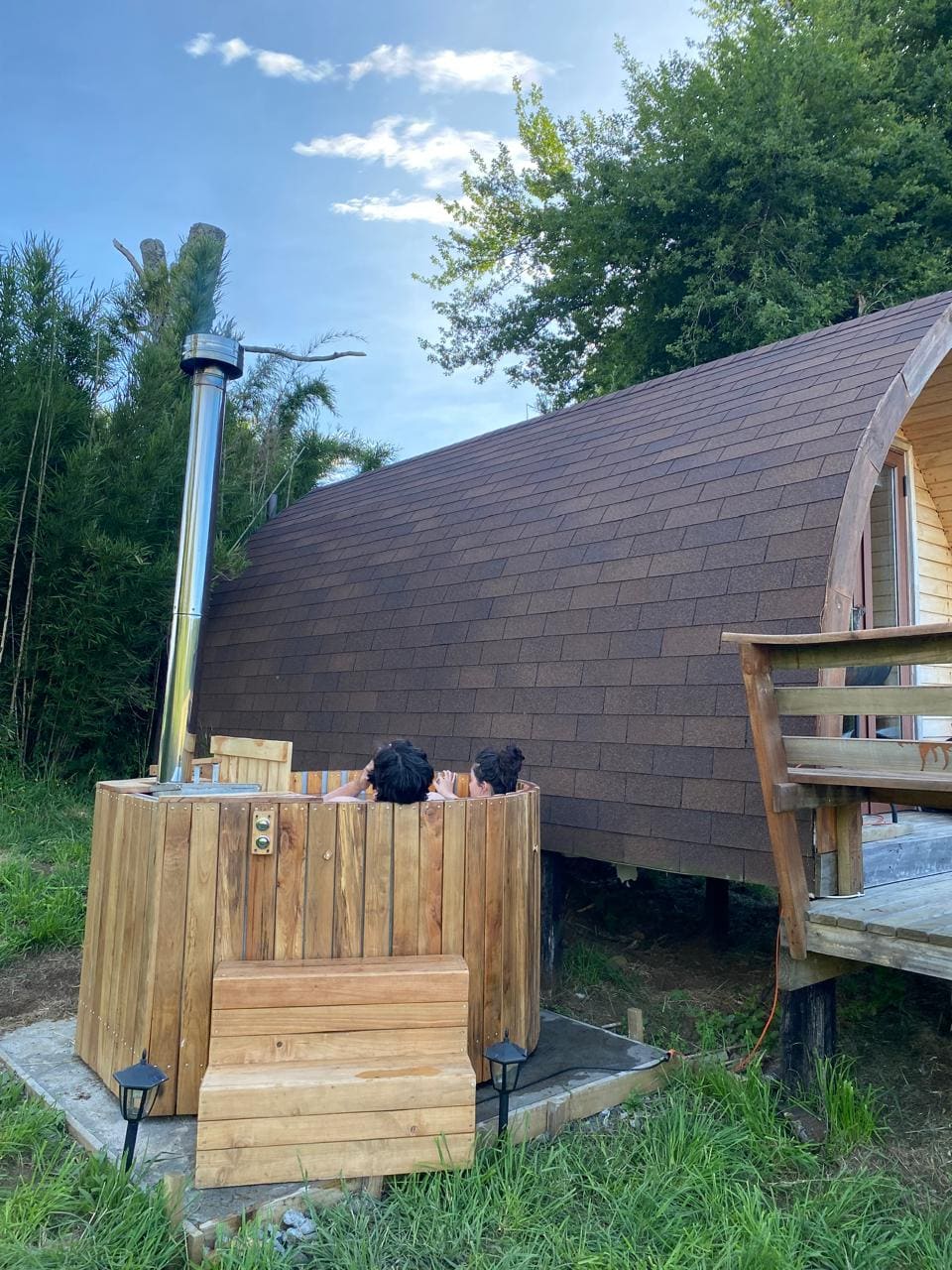 The cabin includes : 1 main room which includes a double bed 1 bathroom 1 equipped kitchen 1 mini fridge 1 sofa 1 small table with 2 chairs 1 Smart TV (no channels) 1 gas oven 1 wood heating stove 1 terrace 1 outdoor bbq pit Start pack included : Bed sheets Towels 1 Toilet paper roll Dish soap Matches 1 Trash bag (Bathroom + Kitchen) Reusable sponge 1 Kitchen towel Handsoap The water is drinkable from the tab.