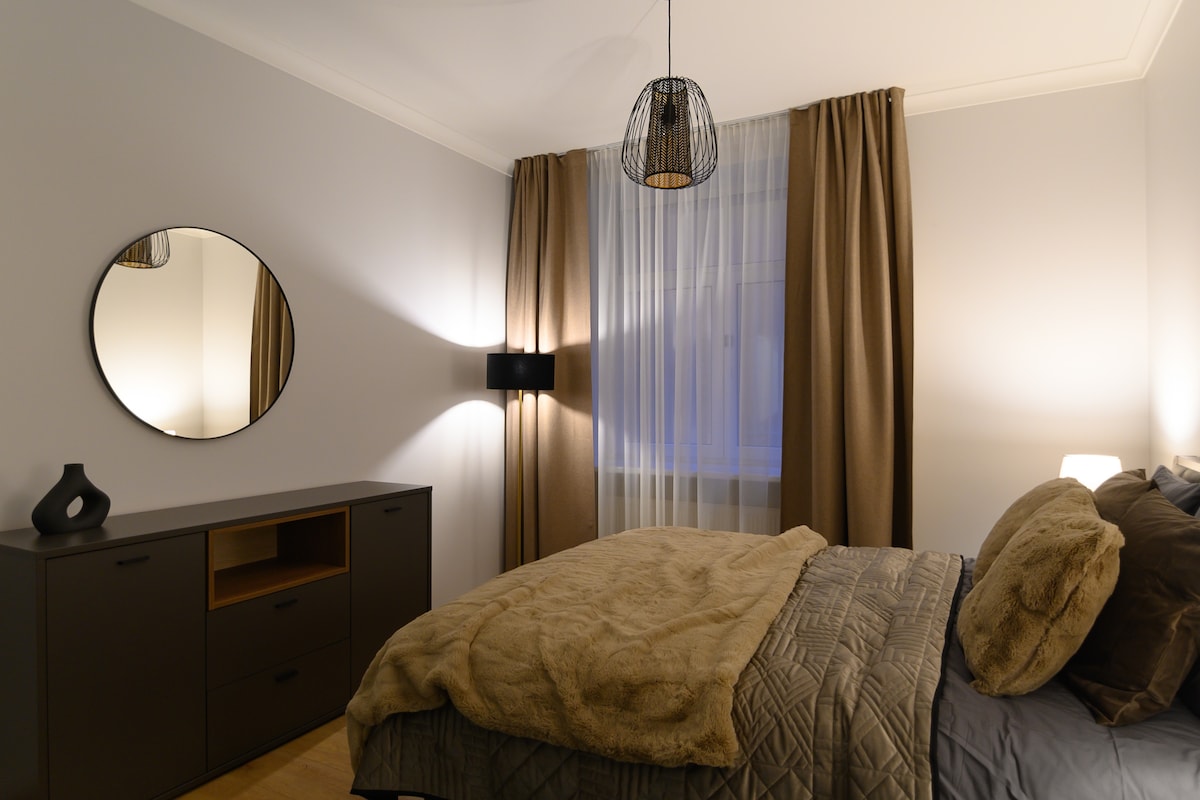 ಇದು ರಿಗಾದ ಪ್ರತಿಷ್ಠಿತ ಆರ್ಟ್ ನೌವಿಯು ಜಿಲ್ಲೆಯಲ್ಲಿರುವ ಆಧುನಿಕ 1-ಬೆಡ್ರೂಮ್ ಅಪಾರ್ಟ್ಮೆಂಟ್ ಆಗಿದೆ, ಇದನ್ನು ಶಾಂತ ಕೇಂದ್ರ ಎಂದೂ ಕರೆಯುತ್ತಾರೆ. ಹೆಚ್ಚಿನ ಪ್ರವಾಸಿ ಆಕರ್ಷಣೆಗಳಿಗೆ ನಡೆಯುವ ದೂರ ಮತ್ತು ನಗರವು ನೀಡುವ ಕೆಲವು ಅತ್ಯುತ್ತಮ ಬಾರ್ಗಳು ಮತ್ತು ರೆಸ್ಟೋರೆಂಟ್ಗಳಿಗೆ ಹತ್ತಿರದಲ್ಲಿದೆ. ಅಪಾರ್ಟ್ಮೆಂಟ್ ನೀವು ಪರಿಪೂರ್ಣ ವಿಹಾರಕ್ಕಾಗಿ ಕವರ್ ಮಾಡಿದ್ದೀರಿ. ಸ್ತಬ್ಧ ಅಂಗಳದ ಕಟ್ಟಡ ಮತ್ತು ಆರಾಮದಾಯಕವಾದ ಡಬಲ್ ಸೈಜ್ ಬೆಡ್ ನಿಮಗೆ ಉತ್ತಮ ನಿದ್ರೆಯ ಅನುಭವವನ್ನು ನೀಡುತ್ತದೆ ಎಂದು ಆಶಿಸುತ್ತೇವೆ. ದಂಪತಿ ಅಥವಾ ಏಕಾಂಗಿ ಪ್ರಯಾಣಿಕರಿಗೆ ಸೂಕ್ತವಾಗಿದೆ. ಸ್ವಾಗತ! :)