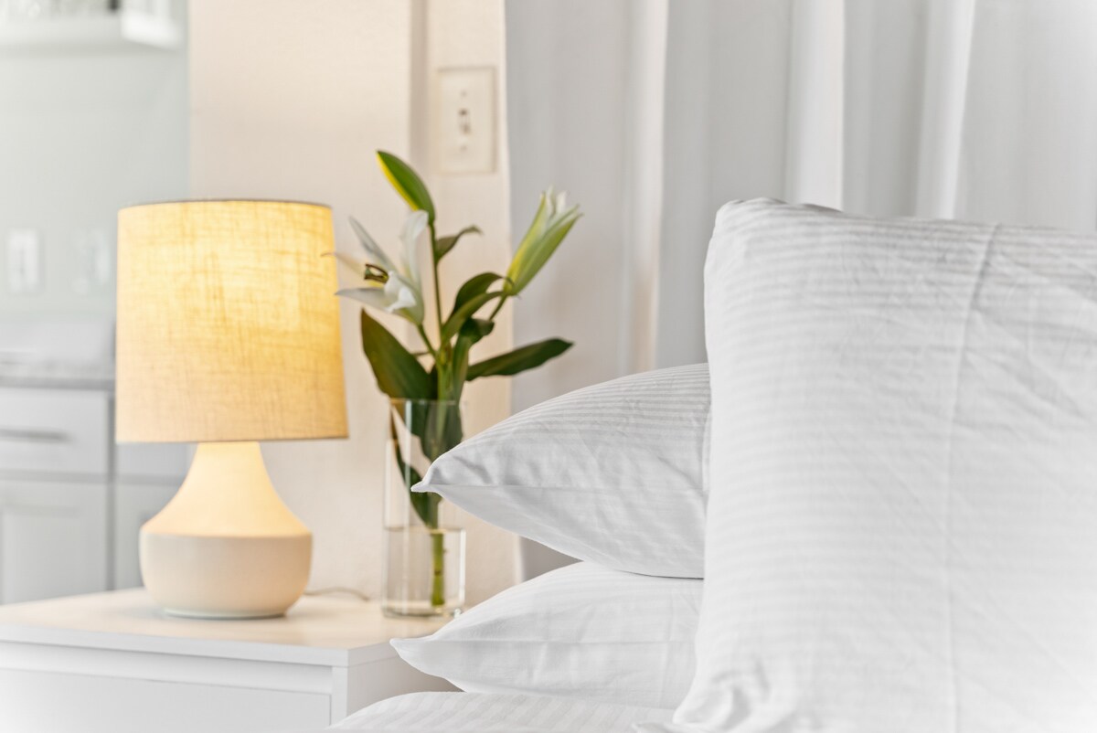 ನಮ್ಮ ಸಿಯೆಸ್ಟಾ ಕೀ ಹೋಟೆಲ್ನಲ್ಲಿರುವ ಸ್ಟುಡಿಯೋ ಸೂಟ್ 1-2 ನಿದ್ರಿಸುತ್ತದೆ. ಪ್ರತಿ ರೂಮ್ ಕಿಂಗ್-ಗಾತ್ರದ ಹಾಸಿಗೆ, 42 ಇಂಚಿನ ಟಿವಿ, ಡೈನಿಂಗ್ ಟೇಬಲ್ ಮತ್ತು ಸಂಪೂರ್ಣವಾಗಿ ಸಂಗ್ರಹವಾಗಿರುವ ಸ್ಟೇನ್ಲೆಸ್ ಸ್ಟೀಲ್ ಅಡಿಗೆಮನೆಯನ್ನು ಒಳಗೊಂಡಿದೆ. ದಂಪತಿಗಳು ಅಥವಾ ಏಕಾಂಗಿ ಪ್ರಯಾಣಿಕರಿಗೆ ಸೂಕ್ತವಾಗಿದೆ. ನಮ್ಮ ಎಲ್ಲಾ ರೂಮ್ಗಳನ್ನು ಇತ್ತೀಚೆಗೆ ನವೀಕರಿಸಲಾಗಿದೆ ಮತ್ತು ಅವು ಆರಾಮದಾಯಕವಾದಂತೆ ಆಕರ್ಷಕವಾಗಿವೆ. ಕಿಂಗ್ ಸ್ಟುಡಿಯೋ ಸೂಟ್ಗಳನ್ನು ಸೊಗಸಾದ ಕಡಲತೀರದ ಅಲಂಕಾರದಲ್ಲಿ ಸಜ್ಜುಗೊಳಿಸಲಾಗಿದೆ, ದಕ್ಷಿಣ ಫ್ಲೋರಿಡಾ ನೀಡುವ ಅದ್ಭುತ ಹವಾಮಾನವನ್ನು ವಿಶ್ರಾಂತಿ ಪಡೆಯಲು ಮತ್ತು ಆನಂದಿಸಲು ಕುರ್ಚಿಗಳು ಮತ್ತು ಛತ್ರಿ ಹೊಂದಿರುವ ಆರಾಮದಾಯಕ ಒಳಾಂಗಣವನ್ನು ಒಳಗೊಂಡಿದೆ.