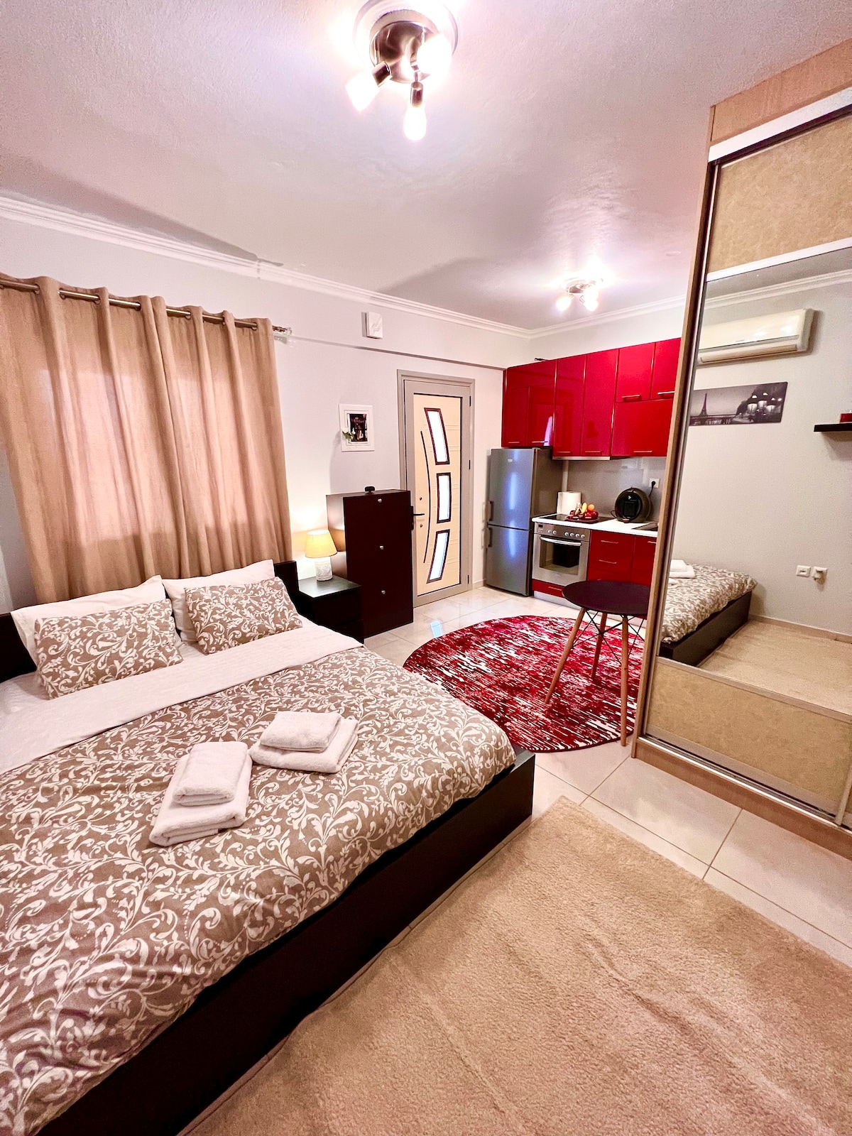 ಸಿಟಿ ಸೆಂಟರ್ಗೆ ಬಹಳ ಹತ್ತಿರದಲ್ಲಿರುವ ದೊಡ್ಡ ಟೆರೇಸ್ ಹೊಂದಿರುವ ಆಕರ್ಷಕ ಸ್ಟುಡಿಯೋ(16,65 ಚದರ ಮೀಟರ್). ಬಸ್ ನಿಲ್ದಾಣದ ಪಕ್ಕದಲ್ಲಿರುವ ಒಂದು ಚೌಕ ,ಸೂಪರ್ ಮಾರ್ಕೆಟ್ ಮತ್ತು ವುಡ್ ಓವನ್ . 10 ನಿಮಿಷಗಳು ಸಿಟಿ ಸೆಂಟರ್ಗೆ ನಡೆಯುತ್ತವೆ ಮತ್ತು 15 ನಿಮಿಷಗಳು ನಡೆಯುತ್ತವೆ, ಐತಿಹಾಸಿಕ ಕೇಂದ್ರ ! 5 ನಿಮಿಷಗಳು ಅಯೋನ್ನಿನಾ ಸರೋವರದಲ್ಲಿ ನಡೆಯಿರಿ!ಸಿನೆಫೈಲ್ಗಳಿಗಾಗಿ ಚಲನಚಿತ್ರಗಳೊಂದಿಗೆ ಸಂಪೂರ್ಣವಾಗಿ ಸುಸಜ್ಜಿತ ಅಡುಗೆಮನೆ,ಕಾಫಿ ಮೇಕರ್ ಮತ್ತು ಡಿವಿಡಿ ಪ್ಲೇಯರ್