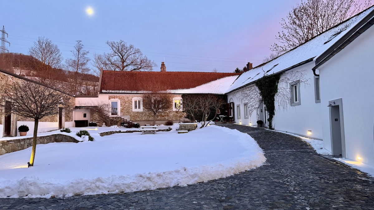 ಡಿಂಗಲ್ಬರ್ಘೋಫ್ ನೆಮ್ಮದಿ ಮತ್ತು ವಿಶ್ರಾಂತಿಯನ್ನು ನೀಡುತ್ತದೆ, ಅಲ್ಲಿ ಜಿಂಕೆ ಆಗಾಗ್ಗೆ ತೆರೆದ ಉದ್ಯಾನಕ್ಕೆ ಅಲೆದಾಡುತ್ತದೆ. ಶಾಂತಿಯುತ ಸೆಟ್ಟಿಂಗ್ ಹೊರತಾಗಿಯೂ, ಉತ್ತಮ ರೈಲು ಮತ್ತು ರಸ್ತೆ ಸಂಪರ್ಕಗಳೊಂದಿಗೆ ವಿಯೆನ್ನಾ ಸೆಂಟ್ರಲ್ ಸ್ಟೇಷನ್ನಿಂದ ಕೇವಲ ಒಂದು ಗಂಟೆ ದೂರದಲ್ಲಿದೆ. 130 ಚದರ ಮೀಟರ್ ಗೆಸ್ಟ್ ಸೂಟ್ ಒಂದು ಬದಿಯಲ್ಲಿ ರೊಮ್ಯಾಂಟಿಕ್ ಅಂಗಳ ಮತ್ತು ಸೌನಾ ಮತ್ತು ಶವರ್ ಹೊಂದಿರುವ ಪ್ರೈವೇಟ್ ಗಾರ್ಡನ್ ಅನ್ನು ಹೊಂದಿದೆ. ಅಡುಗೆಮನೆ ಮತ್ತು ಬಾತ್ರೂಮ್ನಲ್ಲಿ ಕಮಾನಿನ ಛಾವಣಿಗಳನ್ನು ಹೊಂದಿರುವ 16 ನೇ ಶತಮಾನದ ಗೋಡೆಗಳು ವಿಶಿಷ್ಟ ವಾತಾವರಣವನ್ನು ಸೃಷ್ಟಿಸುತ್ತವೆ.