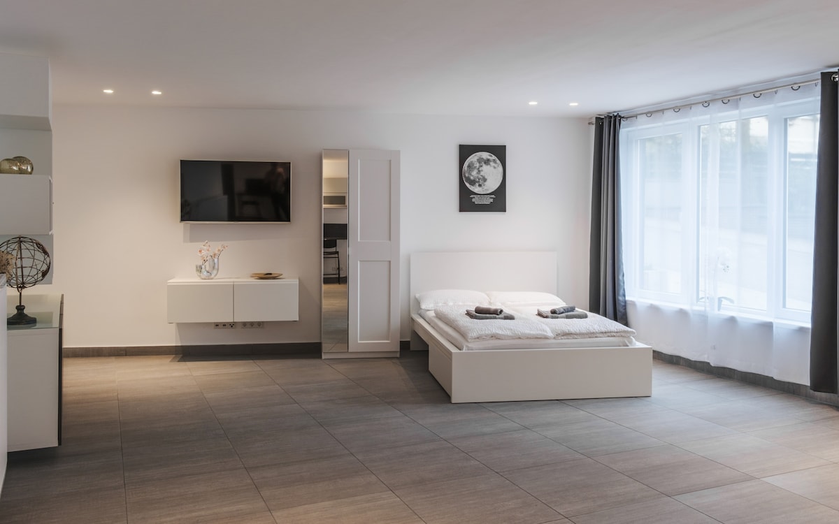 ಎಮ್ಮೆಲ್ಶೌಸೆನ್ನಲ್ಲಿ ಸ್ತಬ್ಧ ಸ್ಥಳದಲ್ಲಿ ಆರಾಮದಾಯಕ, ಆಧುನಿಕ ಅಪಾರ್ಟ್ಮೆಂಟ್. ಡಬಲ್ ಬೆಡ್ನಲ್ಲಿ ವಿಶ್ರಾಂತಿ ಪಡೆಯಿರಿ, ಫ್ಲಾಟ್-ಸ್ಕ್ರೀನ್ ಟಿವಿ, ಸಂಪೂರ್ಣ ಸ್ವಯಂಚಾಲಿತ ಕಾಫಿ ಯಂತ್ರ ಮತ್ತು ಆಧುನಿಕ ಬಾತ್ರೂಮ್ ಹೊಂದಿರುವ ಸಂಪೂರ್ಣ ಸುಸಜ್ಜಿತ ಅಡುಗೆಮನೆಯನ್ನು ಆನಂದಿಸಿ. ಟೆರೇಸ್ ನಿಮ್ಮನ್ನು ಕಾಲಹರಣ ಮಾಡಲು ಆಹ್ವಾನಿಸುತ್ತದೆ. ಸೂಪರ್ಮಾರ್ಕೆಟ್, ಬೇಕರಿ ಮತ್ತು ರೆಸ್ಟೋರೆಂಟ್ಗಳಿಗೆ ಕೇವಲ 1 ಕಿ .ಮೀ. "ಝಾಪ್" ಸಾಂಸ್ಕೃತಿಕ ಕಾರ್ಯಕ್ರಮಗಳು ಮತ್ತು ಕಾರ್ಯಕ್ರಮಗಳನ್ನು ನೀಡುತ್ತದೆ. ಪ್ರಕೃತಿ ಮತ್ತು ಸಂಸ್ಕೃತಿ ಪ್ರಿಯರಿಗಾಗಿ: ವೇ ಆಫ್ ಸೇಂಟ್ ಜೇಮ್ಸ್, ಎರ್ಬಚ್ಕ್ಲಾಮ್, ಲೋರೆಲಿ, ಕೋಟೆಗಳು, ಅರಮನೆಗಳು ಮತ್ತು ಗೇಯರ್ಲೇ ಸೇತುವೆ ನಿಮಗಾಗಿ ಕಾಯುತ್ತಿವೆ. ವಿಹಾರ ಅಥವಾ ದೀರ್ಘಾವಧಿಯ ವಾಸ್ತವ್ಯಕ್ಕೆ ಸೂಕ್ತವಾಗಿದೆ.