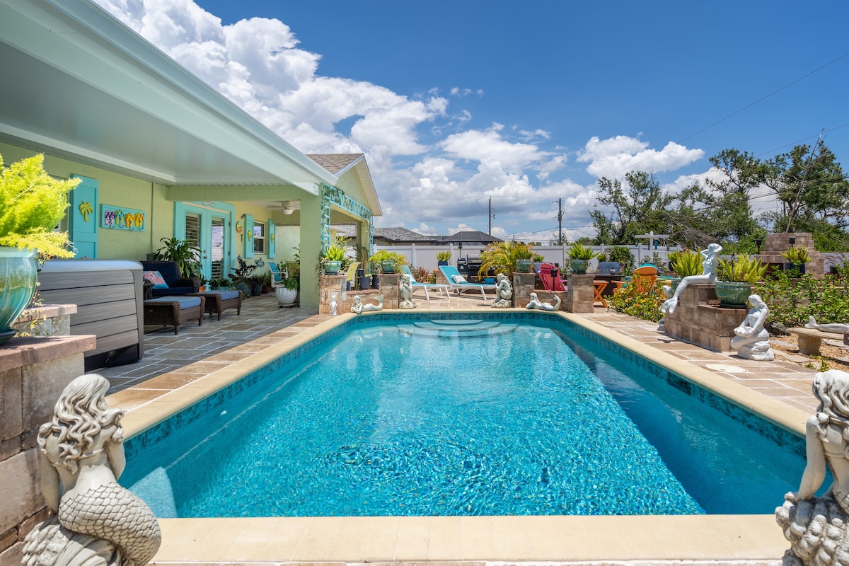ಆಕ್ವಾ ಓಯಸಿಸ್ಗೆ ಸುಸ್ವಾಗತ! ಈ ಮನೆಯನ್ನು 2020 ರಲ್ಲಿ ನಿರ್ಮಿಸಲಾಯಿತು ಮತ್ತು ಬಿಸಿಲಿನ ಎಂಗಲ್ವುಡ್, FL ನಲ್ಲಿರುವ ಅನೇಕ ಕಡಲತೀರಗಳಿಗೆ ಕೇವಲ 6 ಮೈಲುಗಳಷ್ಟು ದೂರದಲ್ಲಿದೆ! ಮನೆಯು 3 ಬೆಡ್ರೂಮ್ಗಳು ಮತ್ತು 2 ಪೂರ್ಣ ಸ್ನಾನದ ಕೋಣೆಗಳನ್ನು ಒಳಗೊಂಡಿದೆ, ಹೊರಾಂಗಣ ಪೂಲ್ ಅನ್ನು ಬಿಸಿ ಮಾಡುವ ಆಯ್ಕೆ, ಗ್ಯಾಸ್ ಫೈರ್ ಪಿಟ್ ಸುತ್ತಲೂ ಹೊರಾಂಗಣ ಕುರ್ಚಿಗಳನ್ನು ವಿಶ್ರಾಂತಿ ಮಾಡುವುದು, ನಿಮ್ಮ ಸಾಕುಪ್ರಾಣಿಗಳನ್ನು ತಿರುಗಾಡಲು ಹಿಂಭಾಗದ ಅಂಗಳದಲ್ಲಿ ಬೇಲಿ ಹಾಕುವುದು ಮತ್ತು ನಿಮ್ಮ ನೆಚ್ಚಿನ ಊಟವನ್ನು ವಿಪ್ ಅಪ್ ಮಾಡಲು ಗ್ಯಾಸ್ ಗ್ರಿಲ್! ನಿಮ್ಮ ಕುಟುಂಬವು ನಿಮ್ಮ ಸ್ವಂತ, ಖಾಸಗಿ ಸ್ಥಳ ಮತ್ತು ಖಾಸಗಿ ಪೂಲ್ ಅನ್ನು ಬಯಸಿದರೆ, ಆದರೆ ನೀವು ಸ್ಥಳೀಯ ಕಡಲತೀರಗಳಿಗೆ ಹತ್ತಿರದಲ್ಲಿರಲು ಬಯಸಿದರೆ- ಇದು ನಿಮಗಾಗಿ!