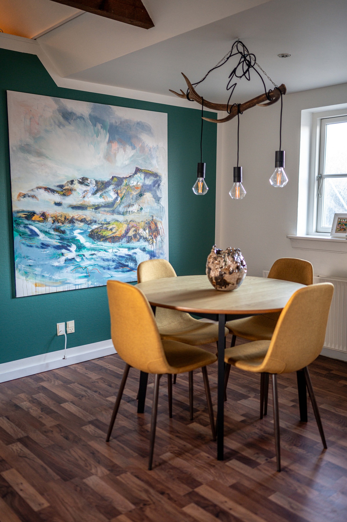ಫ್ಜಾರ್ಡ್ನ ವಿಹಂಗಮ ನೋಟಗಳು ಮತ್ತು ಯುನೆಸ್ಕೋ ಗ್ಲೋಬಲ್ ಜಿಯೋಪಾರ್ಕ್ ಎಂದು ಗುರುತಿಸಲಾದ ಸುಂದರವಾದ ಹಿಮಯುಗದ ಭೂದೃಶ್ಯದೊಂದಿಗೆ ಈ ಪ್ರಶಾಂತ ತೋಟದ ಮನೆಯ ನೆಮ್ಮದಿಯನ್ನು ಅನುಭವಿಸಿ. ಹಳೆಯ ಫಾರ್ಮ್ಹೌಸ್ ಅನ್ನು 2025 ರ ಬೇಸಿಗೆಯಲ್ಲಿ, ಅಡುಗೆಮನೆಯಲ್ಲಿ ಹೊಸ ಉಪಕರಣಗಳು, ಹೊಸ ಹಾಸಿಗೆಗಳು ಮತ್ತು ಡವೆಟ್ಗಳು, ಜೊತೆಗೆ ನವೀಕರಿಸಿದ ಬಾತ್ರೂಮ್, ಲಿವಿಂಗ್ ರೂಮ್ನಲ್ಲಿ ಹೊಸ ಮಹಡಿ ಮತ್ತು ಮರದ ಸುಡುವ ಸ್ಟೌವ್ನೊಂದಿಗೆ ಆಧುನೀಕರಿಸಲಾಗಿದೆ. ಮನೆಯು ವಿಶಾಲವಾದ ಉದ್ಯಾನ ಲಿವಿಂಗ್ ರೂಮ್ ಮತ್ತು ಸುಂದರವಾದ ಪಶ್ಚಿಮ ಮುಖದ ಟೆರೇಸ್ ಹೊಂದಿರುವ ದೊಡ್ಡ ಉದ್ಯಾನವನ್ನು ಒಳಗೊಂಡಿದೆ. ಮನೆ ಕಡಲತೀರ, ಅರಣ್ಯ ಮತ್ತು ಹಲವಾರು ಐತಿಹಾಸಿಕ ಆಕರ್ಷಣೆಗಳಿಗೆ ಸೈಕ್ಲಿಂಗ್ ಅಂತರದಲ್ಲಿದೆ.
