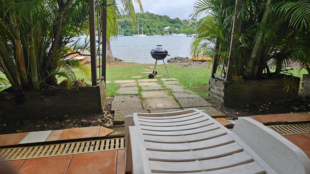 Appartement F2 les pieds dans l'eau, à la pointe du bout, bas de villa. Baignade discrète. Pédalo et kayack à disposition. Très calme. Tout confort. Chambre climatisée équipée d'une moustiquaire. Ideal pour couple. Supplément 2 enfants ou 2 adultes MAXI. Tout près du village créole, de la vedette de la pointe du bout, des commerces, des restaurants et du casino. Golf des trois-Ilets à 10 min en voiture. 1er petit-dejeuner offert. En option repas à l'arrivée et repas langoustes sur commande.