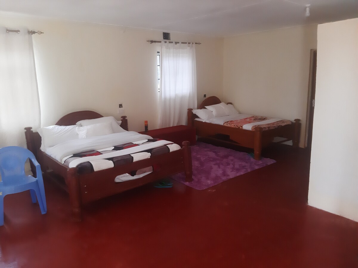 ಈ ಕಾಟೇಜ್ 2 ಸಿಂಗಲ್ ಬೆಡ್ಗಳನ್ನು (120x180 ಸೆಂ.ಮೀ ಅಥವಾ 4x6 ಅಡಿ) ಹೊಂದಿರುವ ಒಂದು ಮಲಗುವ ಕೋಣೆ ಮತ್ತು ಶವರ್ ಮತ್ತು ಟಾಯ್ಲೆಟ್ ಹೊಂದಿರುವ ಒಂದು ಖಾಸಗಿ ಬಾತ್ರೂಮ್ ಅನ್ನು ಹೊಂದಿದೆ. ಇದು ವಿಶಾಲವಾಗಿದೆ ಮತ್ತು ಸುತ್ತಮುತ್ತಲಿನ ಉದ್ಯಾನ ಮತ್ತು ಅರಣ್ಯದ ಮೇಲೆ ಸುಂದರವಾದ ನೋಟವನ್ನು ಹೊಂದಿದೆ. ಮನೆಯನ್ನು ಸಾಂಪ್ರದಾಯಿಕ ಮಸಾಯ್ ವಾಸ್ತುಶಿಲ್ಪದಲ್ಲಿ ವಿನ್ಯಾಸಗೊಳಿಸಲಾಗಿದೆ ಮತ್ತು ಸಾಂಪ್ರದಾಯಿಕ ವಸ್ತುಗಳಿಂದ ನಿರ್ಮಿಸಲಾಗಿದೆ.
