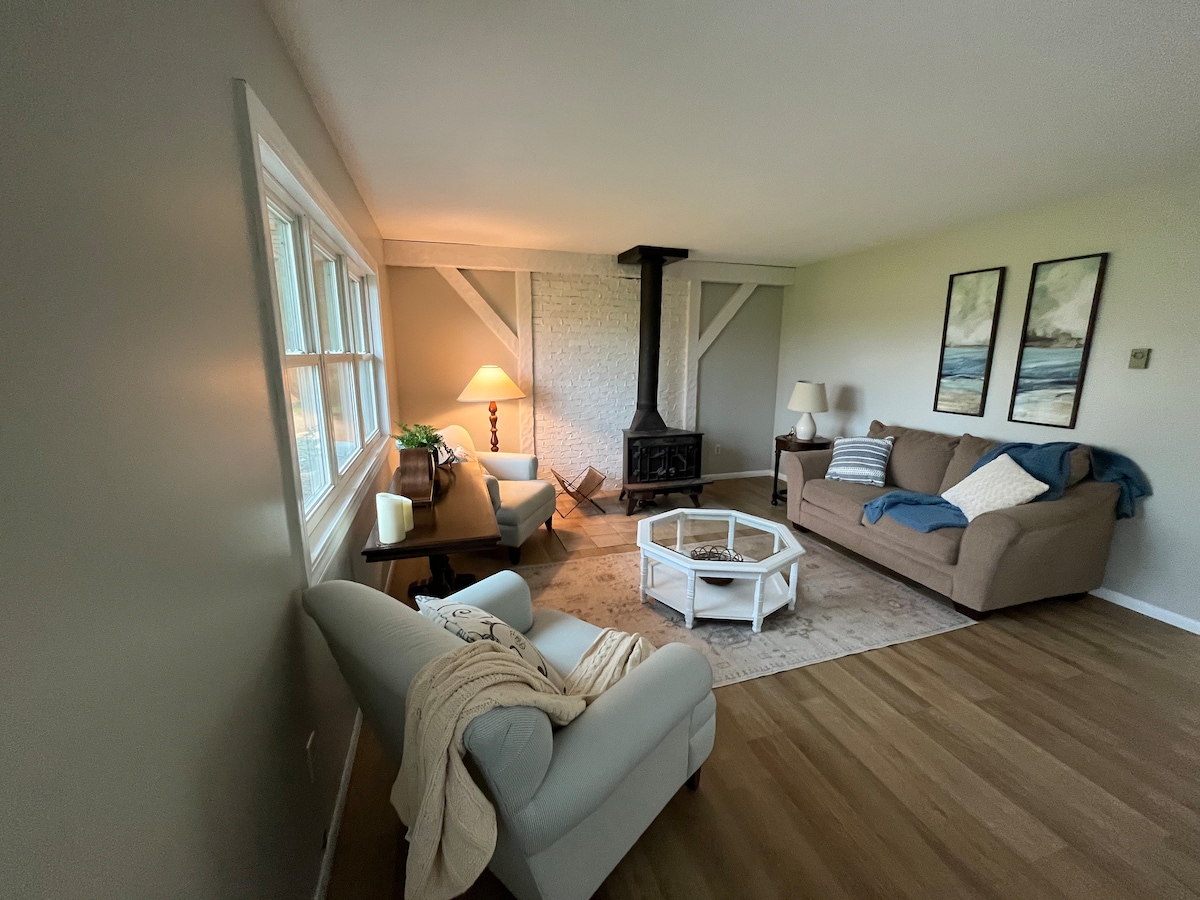 ನಮ್ಮ ರೆಟ್ರೊ ಪ್ರೇರಿತ ಚಾಲೆ ಅನುಕೂಲಕರ ಸೌಲಭ್ಯಗಳಿಗೆ ಅತ್ಯುತ್ತಮ ಪ್ರವೇಶದೊಂದಿಗೆ ಏಕಾಂತ ಅರಣ್ಯ ಸೆಟ್ಟಿಂಗ್ ಅನ್ನು ನೀಡುತ್ತದೆ! ನಮ್ಮ ಕುಟುಂಬ-ಸ್ನೇಹಿ ಸ್ಥಳವು 6 ಗೆಸ್ಟ್ಗಳಿಗೆ ಆರಾಮವಾಗಿ ನಿದ್ರಿಸುತ್ತದೆ. ನಿಮ್ಮ ಅನುಕೂಲಕ್ಕಾಗಿ ಮತ್ತು ಅಧಿಕೃತ ಸೌಂದರ್ಯಕ್ಕಾಗಿ ಪ್ರತಿ ರೂಮ್ ಅನ್ನು ಚಿಂತನಶೀಲವಾಗಿ ನೇಮಿಸಲಾಗಿದೆ. ಇಡೀ ಮನೆ ಬಳಸಲು ನಿಮ್ಮದಾಗಿದೆ. ಸಂಪೂರ್ಣ ಸುಸಜ್ಜಿತ ಅಡುಗೆಮನೆ ಮತ್ತು ಲಾಂಡ್ರಿ ರೂಮ್ ಉತ್ತಮ ಬೋನಸ್ ಆಗಿದೆ. ಬಿಸಿಲು ಮತ್ತು ಮಳೆಗಾಲದ ದಿನಗಳಲ್ಲಿ ವಿಶಾಲವಾದ ಮುಂಭಾಗದ ಮುಖಮಂಟಪದಲ್ಲಿ ತಾಜಾ ಕಪ್ ಕಾಫಿಯನ್ನು ಸಿಪ್ ಮಾಡಿ. ಲಗತ್ತಿಸಲಾದ 3 ಕಾರ್ ಗ್ಯಾರೇಜ್ ಮತ್ತು ಡ್ರೈವ್ವೇ ಸಾಕಷ್ಟು ಪಾರ್ಕಿಂಗ್ಗೆ ಅನುಮತಿಸುತ್ತದೆ.