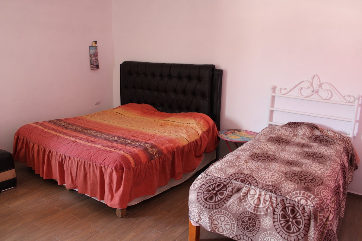 ಆಹ್ಲಾದಕರ ವಾತಾವರಣ, ನೈಸರ್ಗಿಕ ಬೆಳಕಿನ ಪ್ರವೇಶ, ಆನಂದಿಸಲು ಅಥವಾ ವಿಶ್ರಾಂತಿ ಪಡೆಯಲು ಸೂಕ್ತವಾದ ಅಪಾರ್ಟ್ಮೆಂಟ್, ಸೋಫಾ, ನಿಮಗೆ ಅಗತ್ಯವಿರುವ ಎಲ್ಲವನ್ನೂ ಹೊಂದಿರುವ ಅವಿಭಾಜ್ಯ ಅಡುಗೆಮನೆ, ಡೈನಿಂಗ್ ರೂಮ್, ಡಬಲ್ ಬೆಡ್ ಹೊಂದಿರುವ ರೂಮ್ಗಳು, ಕ್ಲೋಸೆಟ್, ಫ್ಯಾನ್, ವೈ-ಫೈ, ಪೂರ್ಣ ಬಾತ್ರೂಮ್ ತುಂಬಾ ವಿಶಾಲವಾಗಿದೆ ಮತ್ತು ಅನಿವಾರ್ಯ (ಶಾಂಪೂ, ಸೋಪ್ಗಳು, ಕ್ಲೀನ್ ಟವೆಲ್ಗಳು, ಟಾಯ್ಲೆಟ್ ಪೇಪರ್, ಬಿಸಿ ನೀರು) ಮತ್ತು ದೊಡ್ಡ ಹಿತ್ತಲನ್ನು ಹೊಂದಿದೆ, ಎಲ್ಲವೂ ನಿಷ್ಪಾಪವಾಗಿ ಸ್ವಚ್ಛವಾಗಿದೆ, ಮುಚ್ಚಿದ ಗ್ಯಾರೇಜ್ ಜೊತೆಗೆ.
