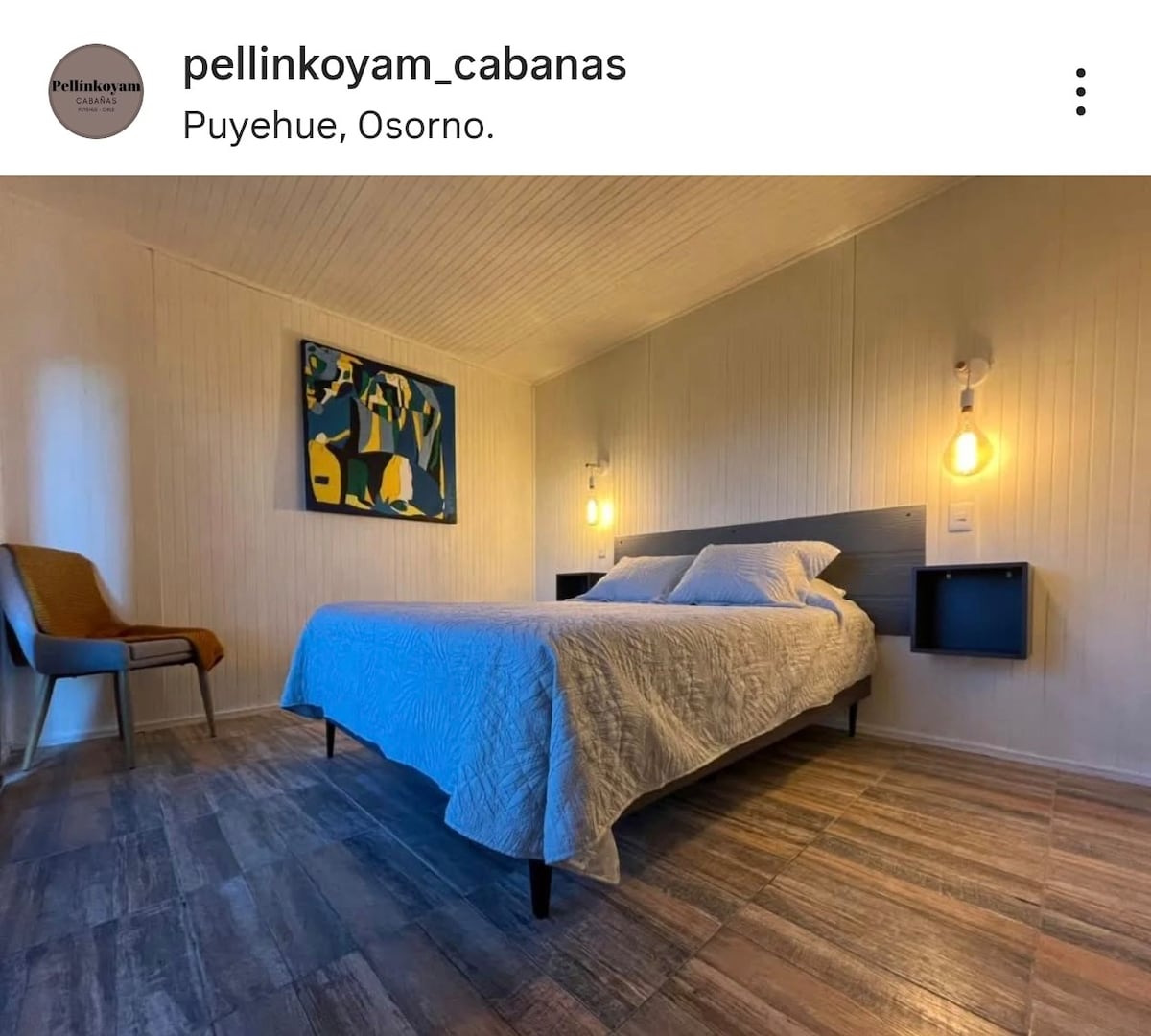 Carintia Cabins se emplazan en un lugar realmente único. A orillas del río Petrohué, se pueden ver y escuchar sus increíbles rápidos, y con una impresionante vista al volcán Osorno, cerro la Picada y volcán Puntiagudo. Nos encontramos entre las localidades de Ensenada (2km) y Petrohué, a solo 2 km del P.N. Vicente Perez Rosales. La cabaña cuenta con una habitación con cama king, cocina equipada y terraza techada con parrilla para poder disfrutar del exterior. Hay Wifi Starlink gratuito.