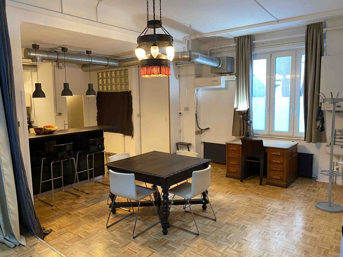 ಅಜ್ಜಿಯ ಹಿಂದಿನ ವರ್ಕ್ಶಾಪ್ ಕಟ್ಟಡದಲ್ಲಿ ಎಡಭಾಗದಲ್ಲಿರುವ ಲಾಫ್ಟ್ Nr9. ಈ ಅಪಾರ್ಟ್ಮೆಂಟ್ ಅಲ್ಪಾವಧಿಯ ಅಥವಾ ದೀರ್ಘಾವಧಿಯ ವಾಸ್ತವ್ಯಗಳಿಗೆ ಸೂಕ್ತವಾಗಿದೆ, ಇದು ವೆಸ್ಟ್ಬಾನ್ಸ್ಟ್ರಾಸ್ನ ಗ್ರುಂಡರ್ಜಿತೌಸ್ನ ಸ್ತಬ್ಧ ಅಂಗಳದ ತುದಿಯಲ್ಲಿದೆ. ಅಸಾಧಾರಣ ಜೀವನ, ಹಳೆಯ ಮತ್ತು ಹೊಸ ಮಿಶ್ರಣ. ಮೇಲಿನಿಂದ ಸಾಕಷ್ಟು ಬೆಳಕನ್ನು ಹೊಂದಿರುವ ಬೆಳಕಿನ ಗುಮ್ಮಟಗಳು (ಕತ್ತಲೆಗೊಳಿಸಬಹುದು) ಮತ್ತು ಆಕಾಶದ ತಡೆರಹಿತ ನೋಟ. ವಿಶ್ರಾಂತಿ ಪಡೆಯಲು ಇನ್ಫ್ರಾರೆಡ್ ಡೀಪ್ ಹೀಟ್ ಕ್ಯಾಬಿನ್. ವಾಸಯೋಗ್ಯ ಸ್ಥಳ, ಬಹುಶಃ ವಿಯೆನ್ನಾದ 7 ನೇ ಜಿಲ್ಲೆಯಲ್ಲಿ ಅನನ್ಯವಾಗಿದೆ!