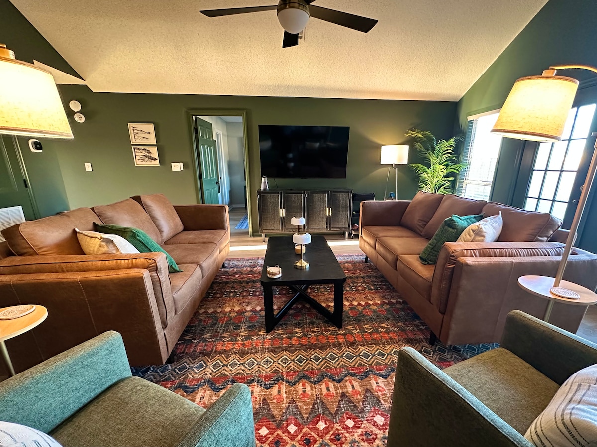 ನೀವು ಕೆಲಸಕ್ಕಾಗಿ ಅಥವಾ ಸಂತೋಷಕ್ಕಾಗಿ ಭೇಟಿ ನೀಡುತ್ತಿರಲಿ, "ದಿ ಟೆರೇಸ್ ರಿಟ್ರೀಟ್" ನಲ್ಲಿ ನೀವು ಸಂಪೂರ್ಣವಾಗಿ ಆರಾಮವಾಗಿರುತ್ತೀರಿ. ಈ ಆರಾಮದಾಯಕ 2 BR, 1 ಸ್ನಾನಗೃಹ, ಹೊಸದಾಗಿ ಸಜ್ಜುಗೊಳಿಸಲಾದ ಮತ್ತು ನವೀಕರಿಸಿದ 1940 ರ ರತ್ನವು ಮನೆಯ ಎಲ್ಲಾ ಸೌಕರ್ಯಗಳನ್ನು ಒದಗಿಸುತ್ತದೆ. ವಿಶ್ರಾಂತಿಯ ರಾತ್ರಿಯ ನಿದ್ರೆಯ ನಂತರ, ಸನ್ರೂಮ್ನಲ್ಲಿ ಅಥವಾ ಶಾಂತಿಯುತ ಹಿತ್ತಲಿನಲ್ಲಿ ಹೊರಾಂಗಣದಲ್ಲಿ ಕುಳಿತಿರುವಾಗ ಎಸ್ಪ್ರೆಸೊ, ಚಹಾ ಅಥವಾ ಕಾಫಿಗೆ ಎಚ್ಚರಗೊಳ್ಳಿ. ಸಂಜೆ, ಪ್ರಶಾಂತ ಮತ್ತು ಸುರಕ್ಷಿತ ನೆರೆಹೊರೆಯಲ್ಲಿ ನಡೆಯಿರಿ ಮತ್ತು ಅಲಂಕಾರಿಕ ಬೆಳಕಿನ ಅಡಿಯಲ್ಲಿ ಅಥವಾ ಫೈರ್ಪಿಟ್ ಸುತ್ತಲೂ ನಿಮ್ಮ ಸಂಜೆಯನ್ನು ಮುಚ್ಚಿ.