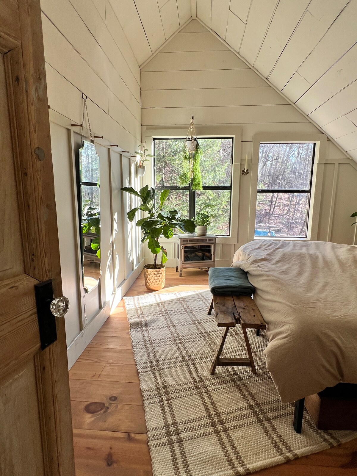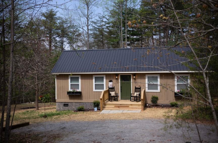 ಈ ಶಾಂತಿಯುತ, ರೋಮ್ಯಾಂಟಿಕ್ ರಿಟ್ರೀಟ್ನಲ್ಲಿ ಆರಾಮವಾಗಿರಿ- ಒಂದೆರಡು ಅಥವಾ ಸಣ್ಣ ಕುಟುಂಬಕ್ಕೆ ಸೂಕ್ತವಾಗಿದೆ. ಸೊಗಸಾದ ಬೆಡ್ರೂಮ್ ಕಿಂಗ್ ಬೆಡ್ ಮತ್ತು ಟಿವಿಯನ್ನು ಹೊಂದಿದೆ, ಆದರೆ ವಯಸ್ಕ-ಗಾತ್ರದ ಬಂಕ್ ಬೆಡ್ಗಳು ಓದಲು ಅಥವಾ ಹೆಚ್ಚುವರಿ ಗೆಸ್ಟ್ಗೆ ಆರಾಮದಾಯಕ ಸ್ಥಳವನ್ನು ನೀಡುತ್ತವೆ. ಐಷಾರಾಮಿ ಟೈಲ್ ಶವರ್, ಪ್ರಮುಖ ಉಪಕರಣಗಳನ್ನು ಹೊಂದಿರುವ ಪೂರ್ಣ ಅಡುಗೆಮನೆ ಮತ್ತು ಕಿಟಕಿಗಳ ಗೋಡೆಯೊಂದಿಗೆ ಮುಖ್ಯ ಕೊಠಡಿಯನ್ನು ಆನಂದಿಸಿ. ಪ್ರೈವೇಟ್ ಡೆಕ್ನಲ್ಲಿ ವಿಶ್ರಾಂತಿ ಪಡೆಯಿರಿ ಮತ್ತು ಬೆರಗುಗೊಳಿಸುವ ಪರ್ವತ ವೀಕ್ಷಣೆಗಳನ್ನು ತೆಗೆದುಕೊಳ್ಳಿ. ಪ್ರಕೃತಿಯ ಹೃದಯದಲ್ಲಿ ಪ್ರಶಾಂತವಾದ ತಪ್ಪಿಸಿಕೊಳ್ಳುವಿಕೆ.