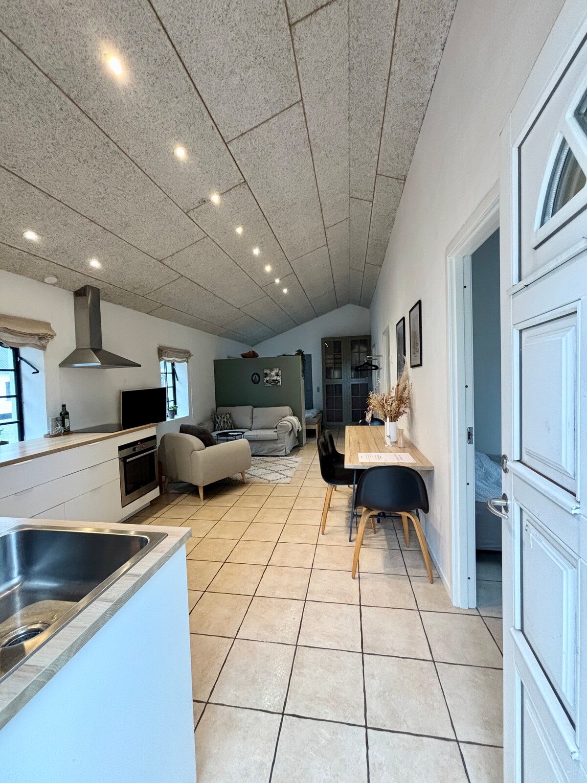 ಸುಂದರವಾದ ಅನೆಕ್ಸ್, ಗ್ರಾಮೀಣ ಪ್ರದೇಶದಲ್ಲಿರುವ ಪ್ರಾಪರ್ಟಿಯಲ್ಲಿ ಸುಂದರವಾಗಿ ನೆಲೆಗೊಂಡಿದೆ. ಗಾರ್ಡನ್ ಮತ್ತು ಫೀಲ್ಡ್ ವ್ಯೂ. ಪ್ರೈವೇಟ್ ಬಾತ್ರೂಮ್. ಬೆಡ್ ಲಿನೆನ್/ಟವೆಲ್ಗಳನ್ನು ಸೇರಿಸಲಾಗಿದೆ. Chromecast ಹೊಂದಿರುವ ಟಿವಿ. ಅಗತ್ಯ ಸೇವೆ ಜೊತೆಗೆ ಮೈಕ್ರೊವೇವ್ ಮತ್ತು ಫ್ರಿಜ್ ಲಭ್ಯವಿದೆ. ಪ್ರಾಪರ್ಟಿಯ 6 ಹೆಕ್ಟೇರ್ನಲ್ಲಿ, ಸಾಂದರ್ಭಿಕವಾಗಿ ಕುದುರೆಗಳು ಹೋಗುತ್ತವೆ, ನೆರೆಹೊರೆಯ ಪ್ರಾಪರ್ಟಿ ಡೆನ್ಮಾರ್ಕ್ನ ಅತಿದೊಡ್ಡ ದ್ರಾಕ್ಷಿತೋಟಗಳಲ್ಲಿ ಒಂದಾಗಿದೆ. ಈ ಪ್ರದೇಶದಲ್ಲಿ ಸುಂದರವಾದ ನಡಿಗೆಗಳಿಗೆ ಅವಕಾಶಗಳಿವೆ. ಇದು ಕೋಲ್ಡಿಂಗ್ ಮತ್ತು ಫ್ರೆಡೆರಿಷಿಯಾಕ್ಕೆ ಸುಮಾರು 12 ಕಿ .ಮೀ ದೂರದಲ್ಲಿದೆ . ಶಾಪಿಂಗ್ ಸುಮಾರು 6 ಕಿ.ಮೀ. ದೂರದಲ್ಲಿದೆ; ಲೆಗೊಲ್ಯಾಂಡ್ಗೆ ಸುಮಾರು 35 ಕಿ.ಮೀ. ನಮ್ಮ ಸ್ಥಳಕ್ಕೆ ಯಾವುದೇ ಸಾರ್ವಜನಿಕ ಸಾರಿಗೆ ಇಲ್ಲ.