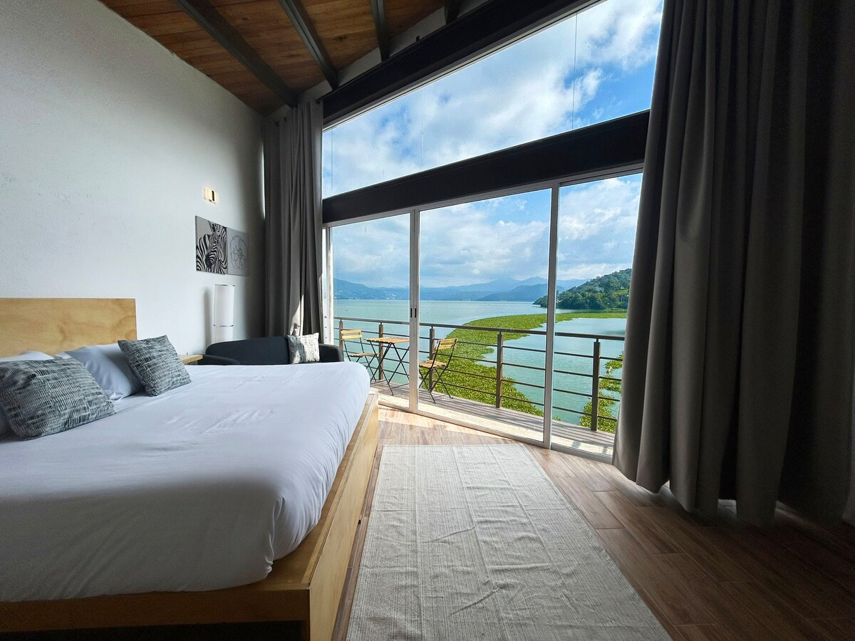 ನಾಲ್ಕು ವಿಶೇಷ ಮತ್ತು ಆಧುನಿಕ ಲಾಫ್ಟ್ಗಳು ಸಂಪೂರ್ಣವಾಗಿ ಹೊಸದಾಗಿವೆ ಮತ್ತು ಸುಸಜ್ಜಿತವಾಗಿವೆ, ಶೈಲಿ ಮತ್ತು ವಿನ್ಯಾಸವು ಆಹ್ಲಾದಕರ ವಾತಾವರಣವನ್ನು ಸೃಷ್ಟಿಸುವುದು ಮತ್ತು ನಿಮಗೆ ಅಗತ್ಯವಿರುವ ಎಲ್ಲವನ್ನೂ ಹೊಂದಿರುವ ವಾಸ್ತವ್ಯವನ್ನು ಕೇಂದ್ರೀಕರಿಸಿದೆ. ಸರೋವರದ ಕಡೆಗೆ ಬೆರಗುಗೊಳಿಸುವ ಎರಡು ಎತ್ತರದ ಎತ್ತರದ ನೋಟವು ಗಮನದ ಕೇಂದ್ರವಾಗಿದೆ, ದಿನವಿಡೀ ನೈಸರ್ಗಿಕ ಬೆಳಕಿನಿಂದ ಸ್ಥಳವನ್ನು ಸಂಪೂರ್ಣವಾಗಿ ತುಂಬುತ್ತದೆ. ಸಾಮಾನ್ಯ ಪ್ರದೇಶಗಳು ಕೆಳಭಾಗದಲ್ಲಿವೆ ಮತ್ತು ಮೆಜ್ಜನೈನ್ನಲ್ಲಿ ಹಾಸಿಗೆ ವಿಶಾಲತೆಯ ಆಹ್ಲಾದಕರ ಭಾವನೆಯನ್ನು ನೀಡುತ್ತದೆ.