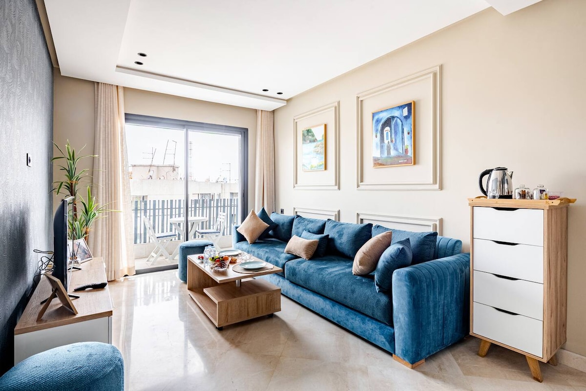 ನಮ್ಮ ಐಷಾರಾಮಿ ಸ್ಟುಡಿಯೋದಲ್ಲಿ ವಿಶ್ರಾಂತಿ ಪಡೆಯಿರಿ, ಅಲ್ಲಿ ಕಾಸಾಬ್ಲಾಂಕಾದ ಅತ್ಯಂತ ಅಪೇಕ್ಷಣೀಯ ನೆರೆಹೊರೆಯಲ್ಲಿ ಆರಾಮವು ಅನುಕೂಲತೆಯನ್ನು ಪೂರೈಸುತ್ತದೆ. ಸೊಗಸಾದ ವಿನ್ಯಾಸ, ಪ್ರೈವೇಟ್ ಜಿಮ್ ಮತ್ತು ವಿಶಾಲವಾದ ಬಾಲ್ಕನಿಯನ್ನು ಒಳಗೊಂಡಿರುವುದು-ನಿಮ್ಮ ಬೆಳಗಿನ ಕಾಫಿಗೆ ಸೂಕ್ತವಾಗಿದೆ ಅಥವಾ ಉಸಿರುಕಟ್ಟುವ ಸಂಜೆ ವೀಕ್ಷಣೆಗಳನ್ನು ಆನಂದಿಸುವುದು. ಉನ್ನತ ರೆಸ್ಟೋರೆಂಟ್ಗಳು, ಅಂಗಡಿಗಳು ಮತ್ತು ಆಕರ್ಷಣೆಗಳನ್ನು ಸ್ವಲ್ಪ ದೂರದಲ್ಲಿ ನೋಡಬೇಕು, ನಿಮ್ಮ ಮನೆ ಬಾಗಿಲಲ್ಲಿ ನೀವು ಎಲ್ಲವನ್ನೂ ಹೊಂದಿರುತ್ತೀರಿ. ನೀವು ವ್ಯವಹಾರಕ್ಕಾಗಿ ಅಥವಾ ವಿರಾಮಕ್ಕಾಗಿ ಭೇಟಿ ನೀಡುತ್ತಿರಲಿ, ವಿಶ್ರಾಂತಿ ಪಡೆಯಲು ಮತ್ತು ರೀಚಾರ್ಜ್ ಮಾಡಲು ಇದು ಸೂಕ್ತವಾದ ಪಲಾಯನವಾಗಿದೆ.