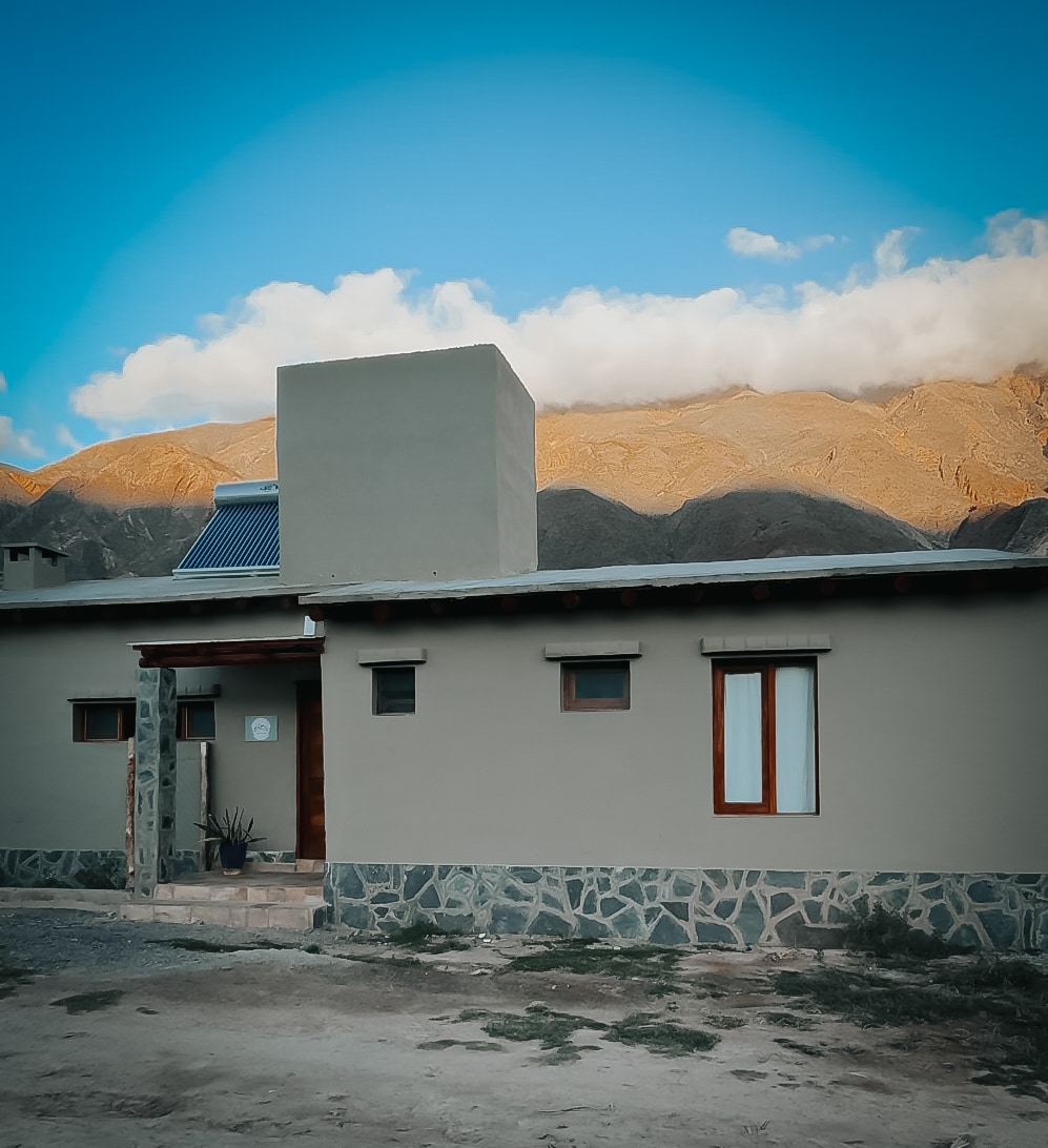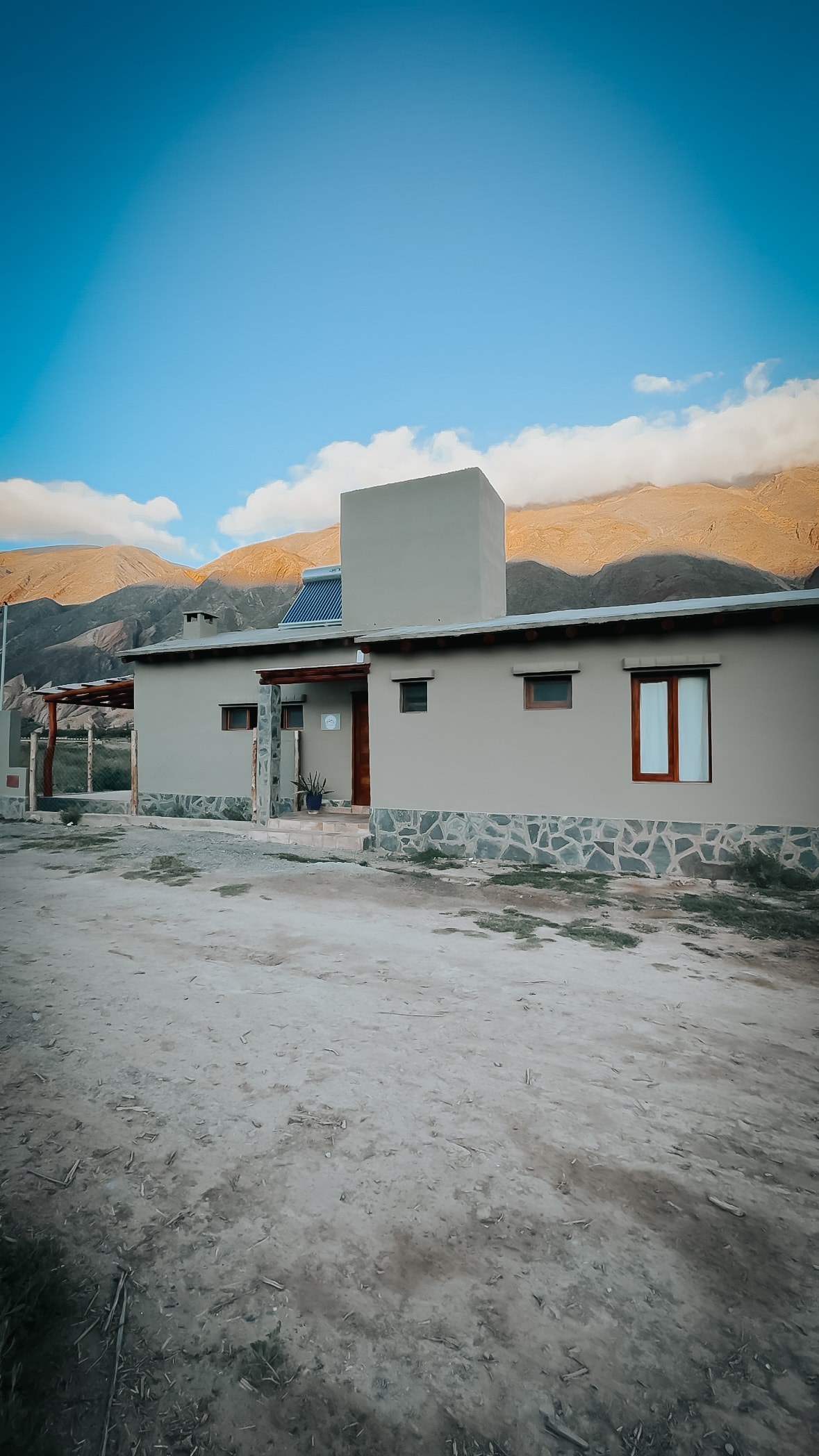 Casita ubicada a 700 metros del centro de Tilcara, ideal para 2 personas, tanto para viaje de vacaciones como para espacio de trabajo. Espacio máximo para 3 personas. Dos habitaciones, living comedor, cocina equipada y completa y dos patios con vistas a Tilcara, el Río Grande y los cerros como telón de fondo.