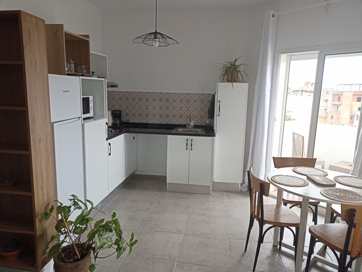 4ನೇ ಮತ್ತು ಮೇಲಿನ ಮಹಡಿಯಲ್ಲಿ ನೆಲೆಗೊಂಡಿರುವ ಲೆ ಪರ್ಚೊಯಿರ್ ಬೊಹೆಮಿಯಾ ಪ್ರಕಾಶಮಾನವಾಗಿದೆ, ತೆರೆದ ವೀಕ್ಷಣೆಗಳೊಂದಿಗೆ, ತಬಾರ್ಕಾದ ಮಧ್ಯದಲ್ಲಿದೆ. ಮೆಟ್ಟಿಲುಗಳ ಮೂಲಕ ಪ್ರವೇಶಿಸಬಹುದಾದ, ನೈಸರ್ಗಿಕ ಬೋಹೀಮಿಯನ್ ಶೈಲಿಯನ್ನು ಹೊಂದಿರುವ ಈ ಅಪಾರ್ಟ್ಮೆಂಟ್ ಆರಾಮ ಮತ್ತು ಟುನೀಶಿಯನ್ ಕುಶಲಕರ್ಮಿಗಳ ವಾತಾವರಣವನ್ನು ಬೆರೆಸುತ್ತದೆ. 1 ಮಾಡ್ಯುಲರ್ ಬೆಡ್ರೂಮ್, ಲಿವಿಂಗ್ ರೂಮ್ (2 ಹೆಚ್ಚುವರಿ ಹಾಸಿಗೆಗಳು), ತೆರೆದ ಅಡುಗೆಮನೆ, ಆಧುನಿಕ ಸ್ನಾನಗೃಹ, ಬಾಲ್ಕನಿ ಮತ್ತು ಸಮುದ್ರದ ನೋಟ, ನಗರ ಮತ್ತು ಫೋರ್ಟ್ ಜಿನೋಯಿಸ್ನೊಂದಿಗೆ ಛಾವಣಿಯ ಪ್ರವೇಶ. ಅಂಗಡಿಗಳು, ರೆಸ್ಟೋರೆಂಟ್ಗಳು, ಟ್ಯಾಕ್ಸಿಗಳು ಮತ್ತು ಕಡಲತೀರಗಳಿಂದ ಕಲ್ಲಿನ ಎಸೆತ. ಹಮ್ಮಮ್ ಮತ್ತು ಮಸೀದಿಯ ಹತ್ತಿರ, ಸ್ಥಳೀಯ ಇಮ್ಮರ್ಶನ್ ಖಾತರಿಪಡಿಸಲಾಗಿದೆ.