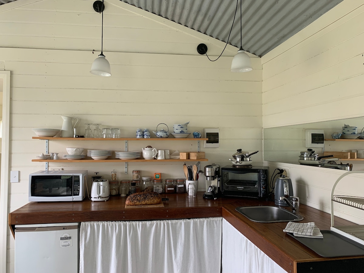 ಕಲೆ, ಬರವಣಿಗೆ ಅಥವಾ ಯೋಗ ರಿಟ್ರೀಟ್, ಮನೆಯಿಂದ ಕೆಲಸ ಅಥವಾ ಮದುವೆಯನ್ನು ಆನಂದಿಸಿ. ನ್ಯಾಷನಲ್ ಟ್ರಸ್ಟ್ ಅನುಮೋದಿತ ಪ್ರಾಪರ್ಟಿ, ಬಹಳ ಖಾಸಗಿ, ವಿಶಾಲವಾದ ಗ್ರಾಮೀಣ ನೋಟಗಳು, ಹೆರಿಟೇಜ್ ಕೆಫೆಗಳು ಮತ್ತು ಗ್ಯಾಲರಿಗಳಿಗೆ 10 ನಿಮಿಷಗಳ ನಡಿಗೆ. ಸುಲಭ ಪ್ರವೇಶ. ಯಾವುದೇ ಹಂತಗಳಿಲ್ಲ. ಫ್ರೆಂಚ್ ಅಗಸೆ ಹಾಸಿಗೆ ಲಿನೆನ್, ಬಿಸಿಮಾಡಿದ ಬಾತ್ರೂಮ್ ಮಹಡಿ, ಮರದ ಬೆಂಕಿ🔥, ಯೋಗ ಮ್ಯಾಟ್ಗಳು, ಮೆರಿನೋ ಸಾಕ್ಸ್ಗಳು, ವೈಫೈ, ಸಣ್ಣ ಗ್ರಂಥಾಲಯ 📚 ಕ್ವೀನ್ & ಸೋಫಾ ಬೆಡ್. ತಾಜಾ ಕೆಫೆ ಬ್ರೆಡ್, ಮೊಟ್ಟೆಗಳು, ಚೀಸ್, ಹಣ್ಣು ಮತ್ತು ಪ್ಯಾಂಟ್ರಿ ಒದಗಿಸಲಾಗಿದೆ, ಡಿ ಲಾಂಗ್ಹಿ ಎಸ್ಪ್ರೆಸೊ, ಮೈಕ್ರೊವೇವ್, ಮಿನಿ ಓವನ್. ಮೋನಾ ಫಾರ್ಮ್ 5 ನಿಮಿಷ, ಕ್ಯಾನ್ಬೆರಾ 1 ಗಂಟೆ, ದಕ್ಷಿಣ ಕರಾವಳಿ 40 ನಿಮಿಷ, ಸ್ಕೀ ಕ್ಷೇತ್ರಗಳು