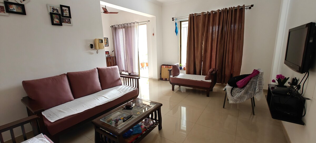 ನಾವು 10% ಕ್ಯಾಶ್ಬ್ಯಾಕ್ ನೀಡುತ್ತೇವೆ. ಹಂಚಿಕೊಳ್ಳುವ ಸ್ಥಳವಿಲ್ಲ. ಸಂಪೂರ್ಣ ಖಾಸಗಿಯಾಗಿದೆ. ಈ ಅಪಾರ್ಟ್ಮೆಂಟ್ ಪಶ್ಚಿಮ ಪುಣೆಯ ಅತ್ಯುತ್ತಮ ಸೇವಾ ಅಪಾರ್ಟ್ಮೆಂಟ್ಗಳಲ್ಲಿ ಒಂದಾಗಿದೆ. ಸ್ಥಳವು NDA, ಬವ್ಧಾನ್, ಚಂದಾನಿ ಚೌಕ್, ಮುಂಬೈ ಹೆದ್ದಾರಿ, ಎರಾಂಡ್ವೇನ್ ಹತ್ತಿರದಲ್ಲಿದೆ. ಯಾವುದೇ ಲಿಫ್ಟ್ ಇಲ್ಲ ಮಾಸ್ಟರ್ ಬೆಡ್ರೂಮ್ನಲ್ಲಿ AC ಉಚಿತ ವೈಫೈ 43 ಇಂಚಿನ HD ಟಿವಿ ಟಾಟಾಸ್ಕಿ RO ವಾಟರ್ ಮಾಡ್ಯುಲರ್ ಅಡುಗೆಮನೆ ಅಡುಗೆ ಪಾತ್ರೆಗಳು ಮಿಕ್ಸರ್ ಗ್ರೈಂಡರ್ LPG ಗ್ಯಾಸ್ ಮತ್ತು ಸ್ಟೋರ್ ಫ್ರಿಜ್ ಮೈಕ್ರೋವಾನ್ ಕಾಂಪ್ಲಿಮೆಂಟರಿ ದಿನಸಿ ಕಬ್ಬಿಣ ಲಿಕ್ವಿಡ್ ಸೋಪ್ ಮತ್ತು ಹ್ಯಾಂಡ್ವಾಶ್ ಟವೆಲ್ಗಳು ಕಿಂಗ್ ಬೆಡ್ ವಾರ್ಡ್ರೋಬ್ ಸೋಫಾ ಅಭಿಮಾನಿಗಳು CCTV ಕವರ್ ಮಾಡಲಾದ ಪಾರ್ಕಿಂಗ್ ಸ್ವಚ್ಛಗೊಳಿಸುವ ಸಿಬ್ಬಂದಿ ಆಹಾರವಿಲ್ಲ