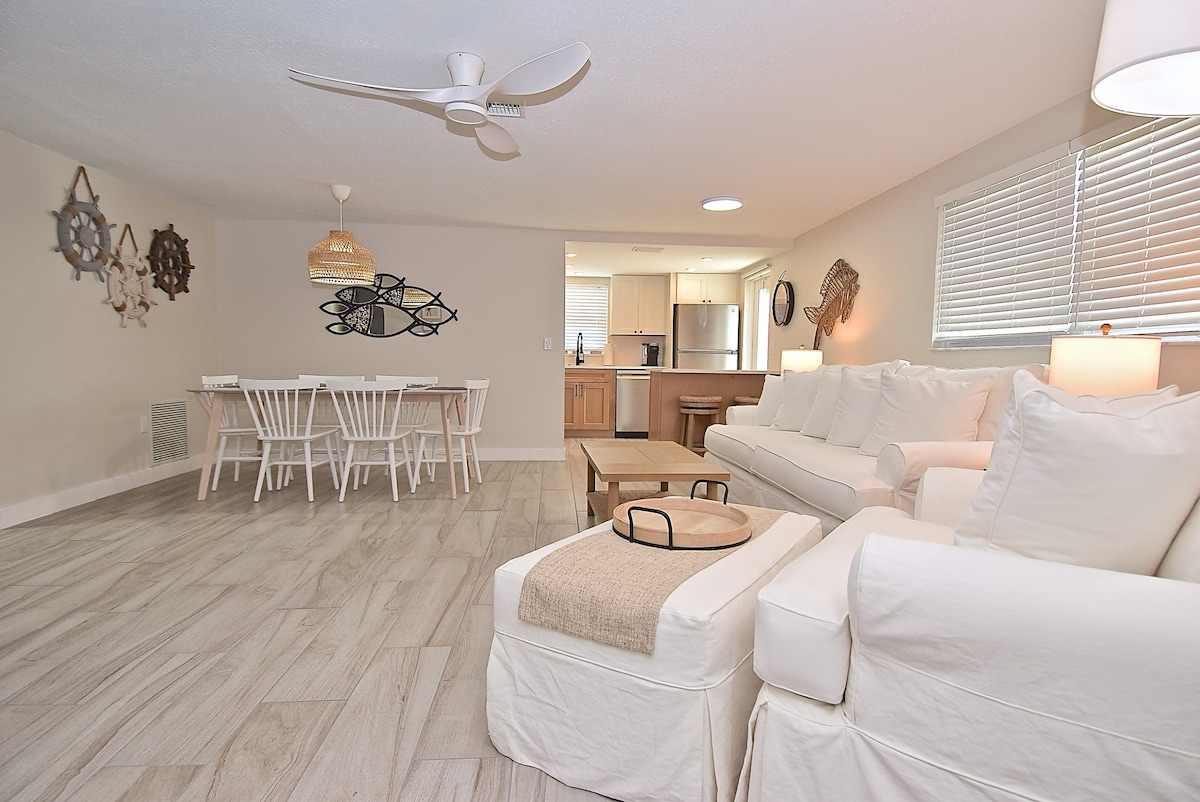 ನಮ್ಮ ಮುದ್ದಾದ, ವಿಶಾಲವಾದ, ಸೂರ್ಯ ತುಂಬಿದ ಮತ್ತು ಹೊಸದಾಗಿ ನವೀಕರಿಸಿದ ಕಡಲತೀರದ ವಿಲ್ಲಾಕ್ಕೆ ಸುಸ್ವಾಗತ. ಮರಳಿನ ಪಾದಗಳು, ಸ್ನೇಹಿತರು ಮತ್ತು ಕುಟುಂಬಕ್ಕೆ ಸಂತೋಷದ ಸ್ಥಳ. ವಿಲ್ಲಾ ವಿಶ್ವಪ್ರಸಿದ್ಧ ಲಿಡೋ ಬೀಚ್ನಿಂದ 1 ಬ್ಲಾಕ್ ದೂರದಲ್ಲಿದೆ, ಸೇಂಟ್ ಅರ್ಮಾಂಡ್ಸ್ ಸರ್ಕಲ್ಗೆ 7 ನಿಮಿಷಗಳ ನಡಿಗೆ ಮತ್ತು ದಿನಸಿ ಶಾಪಿಂಗ್ಗೆ ಸಣ್ಣ 3 ಮೈಲಿ ಡ್ರೈವ್ ಮತ್ತು ಡೌನ್ಟೌನ್ ಸರಸೋಟಾದ ಉತ್ಸಾಹದಲ್ಲಿದೆ. 2 BDR ವಿಲ್ಲಾ 6 ಜನರಿಗೆ ಆರಾಮವಾಗಿ ಮಲಗುತ್ತದೆ ಮತ್ತು ಖಾಸಗಿ ಹೊರಾಂಗಣ ಒಳಾಂಗಣ, ವಿಶಾಲವಾದ ಊಟದ ಪ್ರದೇಶ, ಇನ್-ಯುನಿಟ್ ವಾಷರ್/ಡ್ರೈಯರ್ ಮತ್ತು ಮೀಸಲಾದ ಪಾರ್ಕಿಂಗ್ ಅನ್ನು ಒಳಗೊಂಡಿದೆ. ಸ್ವರ್ಗದ ರುಚಿಯನ್ನು ಆನಂದಿಸಿ!