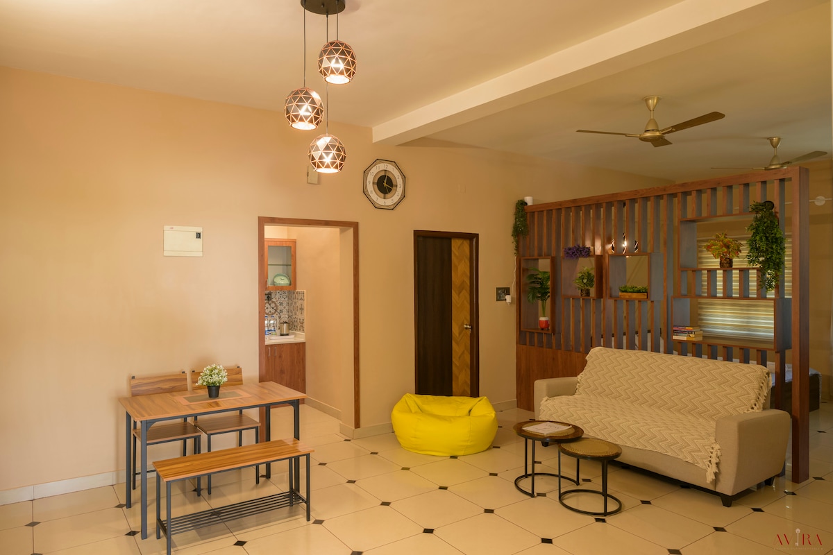 Enjoy your stay in Mangalore in this luxurious, newly remodeled apartment. Centrally located, a short distance to Mangalore's famed tourist attractions, temples and beaches. Easy access to Kadri Shree Manjunatha Temple, Sultan Bathery, St. Aloysius Chapel, Bengre Beach. Close by to the Infosys campus for those looking to WFH. Wonderful coffee shops and restaurants close by. A great place for groups and families to relax and unwind. Wifi and parking are included. Long term stay is available.