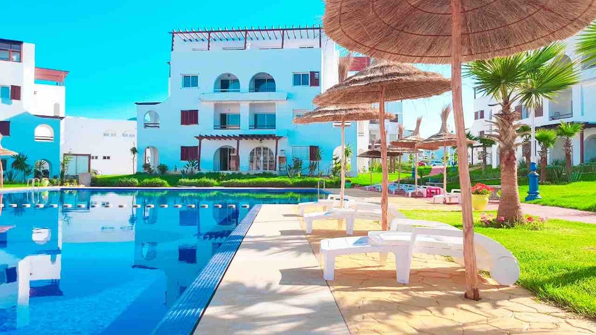 ಆರಾಮದಾಯಕ ಮತ್ತು ಸೊಗಸಾದ, "ಕ್ಯಾಬೊ ಹುಯೆರ್ಟೊ" ನಿವಾಸದಲ್ಲಿರುವ ಈ ಅಪಾರ್ಟ್ಮೆಂಟ್ 24/7 ಸುರಕ್ಷಿತ ನಿವಾಸದ ಉದ್ಯಾನಗಳು ಮತ್ತು 2 ಈಜುಕೊಳಗಳ ವೀಕ್ಷಣೆಗಳನ್ನು ನೀಡುತ್ತದೆ. ಅತ್ಯಂತ ಹೆಚ್ಚಿನ ವೇಗದ ವೈಫೈ (ಫೈಬರ್ ಆಪ್ಟಿಕ್), ಸಂಪೂರ್ಣ ಸುಸಜ್ಜಿತ ಅಡುಗೆಮನೆ ಮತ್ತು ಸ್ನೇಹಪರ ವಾಸದ ಸ್ಥಳವನ್ನು ಹೊಂದಿರುವ ಈ ವಸತಿ ಸೌಕರ್ಯವು ಮೊರಾಕೊದ ಅತ್ಯಂತ ಸುಂದರವಾದ ಕಡಲತೀರಗಳಲ್ಲಿ ಒಂದರಿಂದ 3 ನಿಮಿಷಗಳಿಗಿಂತ ಕಡಿಮೆ ಡ್ರೈವ್ನಲ್ಲಿದೆ, ಇದು ಕ್ಯಾಬೊ ನೀಗ್ರೊದಲ್ಲಿ ನಿಮ್ಮ ವಾಸ್ತವ್ಯಕ್ಕಾಗಿ ಹೆಚ್ಚಿನ ಸಂಖ್ಯೆಯ ರೆಸ್ಟೋರೆಂಟ್ಗಳು, ಅಂಗಡಿಗಳು ಮತ್ತು ಮನರಂಜನಾ ಸ್ಥಳಗಳಿಂದ ಒಂದು ಸಣ್ಣ ನಡಿಗೆ.