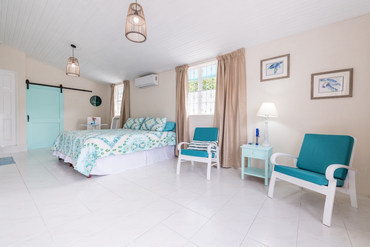 ವಿಶ್ರಾಂತಿಯು ಕೇವಲ ಒಂದು ಪದವಲ್ಲ, ವಾಸ್ತವವಾಗಿದೆ. ಸುತ್ತುವ ಒಳಾಂಗಣದಲ್ಲಿ ವಾಸಿಸುವ ದ್ವೀಪ/ಹ್ಯಾಮಾಕ್ & BBQ. ವಿಶಾಲವಾದ 750 ಚದರ ಅಡಿ ಡೀಲಕ್ಸ್ ಕಿಂಗ್ ಸೂಟ್ ಖಾಸಗಿ ಬೆಡ್ರೂಮ್ನೊಂದಿಗೆ ನೇರವಾಗಿ ಎದುರು ಸುಂದರವಾದ ಬಿಳಿ ಮರಳು ಬೀಚ್ (ಹತ್ತಿರದಲ್ಲಿ 5 ಕಡಲತೀರಗಳು) ಹೊಸ, ಡೋವರ್ ರೋಮಾಂಚಕ StLawrenceGap ಗೆ 5 ನಿಮಿಷಗಳ ನಡಿಗೆ ಐಷಾರಾಮಿ ಶವರ್ ಹವಾನಿಯಂತ್ರಣ ಧ್ವನಿ ತಗ್ಗಿಸುವ ಕಿಟಕಿಗಳು/ಬಾಗಿಲುಗಳು ಬ್ಲ್ಯಾಕ್ಔಟ್ ಪರದೆಗಳು ಕರಕುಶಲ ದೀಪಗಳು ಮತ್ತು ಕೌಂಟರ್ಟಾಪ್ಗಳು ಬೆಡ್ಗಳು:ಕಿಂಗ್,ಕ್ವೀನ್ ಸೋಫಾ ಬೆಡ್,ಟ್ವಿನ್ ಫ್ಯೂಟನ್ ಉಚಿತ ವೈಫೈ ಸುರಕ್ಷಿತ ಅನುಕೂಲಕರ ಅಂಗಡಿ, ಬೈಕ್ ಪ್ರವಾಸಗಳು,ಸರ್ಫ್ ಶಾಲೆ ಮತ್ತು ಹತ್ತಿರದ ರೆಸ್ಟೋರೆಂಟ್ಗಳು