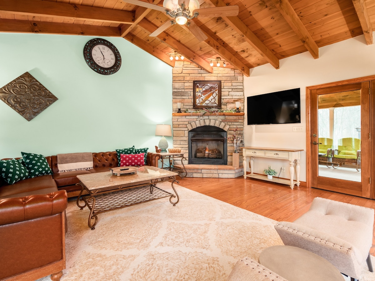 ಯಾವುದೇ ಶುಚಿಗೊಳಿಸುವ ಶುಲ್ಕಗಳಿಲ್ಲ! ಇದು ಕಾಲ್ಪನಿಕ ಕಥೆಯಂತಿದೆ! ಈ ಅಮಿಶ್ ನಿರ್ಮಿತ ಕೊಟ್ಟಿಗೆಯನ್ನು ನಿಮ್ಮ ಟ್ರಿಪ್ನಲ್ಲಿ ವಿಶ್ರಾಂತಿ ಪಡೆಯಲು ಸೂಕ್ತ ಸ್ಥಳವಾಗಿ ಸುಂದರವಾಗಿ ಪೂರ್ಣಗೊಳಿಸಲಾಗಿದೆ. ದೊಡ್ಡ, ಪ್ರೈವೇಟ್ ಅಂಗಳವು ಹಾಟ್ ಟಬ್, ಪ್ರೊಪೇನ್ ಗ್ರಿಲ್, ಪಿಕ್ನಿಕ್ ಟೇಬಲ್ ಮತ್ತು ಫೈರ್ ರಿಂಗ್ ಅನ್ನು ಹೊಂದಿದೆ. ಒಳಗೆ ನೀವು ಬಳಸಲು ಸುಲಭವಾದ ಎಲೆಕ್ಟ್ರಿಕ್ ಫೈರ್ಪ್ಲೇಸ್ಗಳು, ಸ್ಮಾರ್ಟ್ ಟಿವಿ, ಹೈ-ಸ್ಪೀಡ್ ವೈಫೈ, ಮೀಸಲಾದ ಕೆಲಸದ ಸ್ಥಳ, ಕಾಫಿ ಬಾರ್ ಮತ್ತು ಸಂಪೂರ್ಣವಾಗಿ ಸಂಗ್ರಹವಾಗಿರುವ ಅಡುಗೆಮನೆಯನ್ನು ಸುಂದರವಾಗಿ ಅಲಂಕರಿಸಿರುವುದನ್ನು ಕಾಣುತ್ತೀರಿ. ನಿದ್ರೆ 2. ಸಾಕುಪ್ರಾಣಿ ಸ್ನೇಹಿ.
