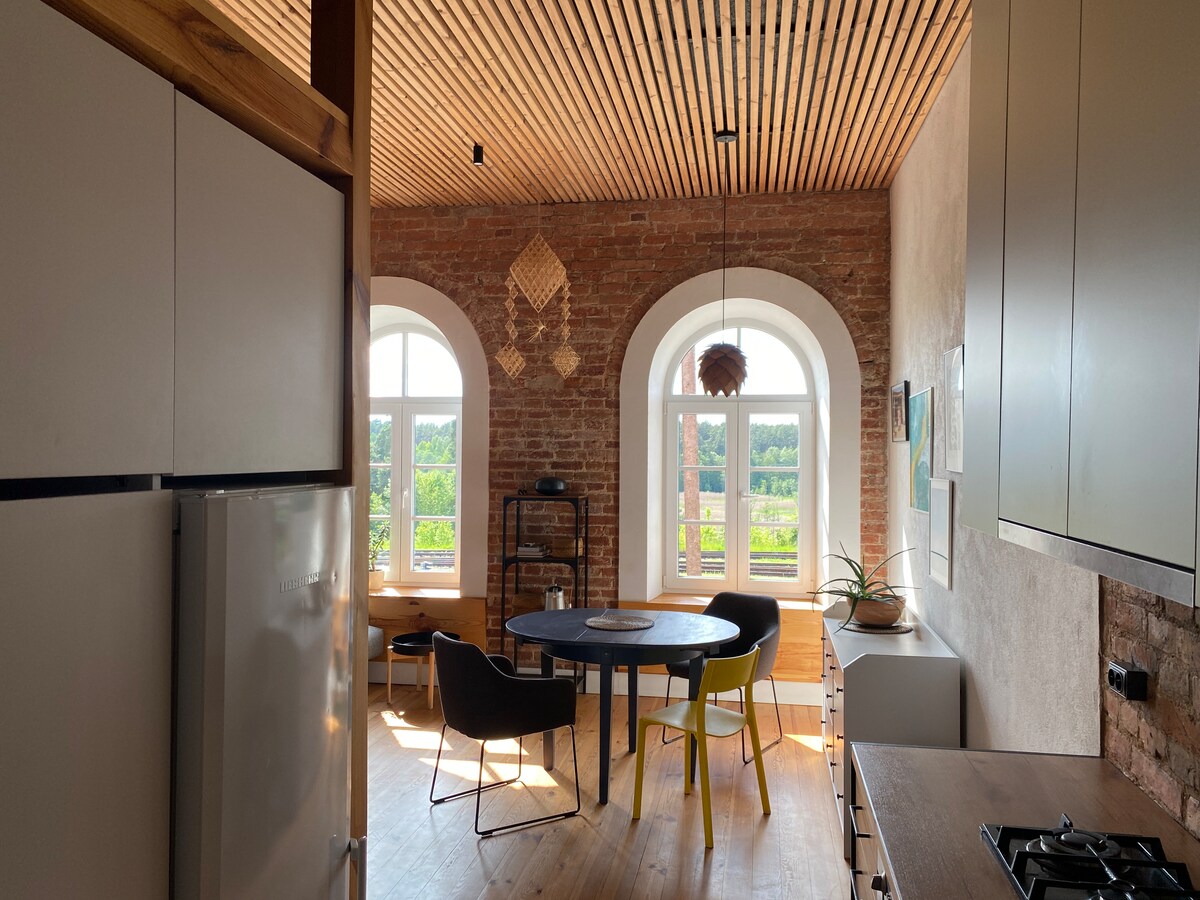 ರೈಲ್ವೆ ಟ್ರ್ಯಾಕ್ಗಳ ನಡುವೆ ಸ್ತಬ್ಧ ಮತ್ತು ಶಾಂತಿಯುತ ಸಣ್ಣ ಲಾಫ್ಟ್ ಅಕ್ಷರಶಃ ಇದೆ. ಅದರ ಕಿಟಕಿಗಳು ನದಿಯನ್ನು ನೋಡುತ್ತವೆ, ಪಕ್ಷಿಗಳಿಂದ ತುಂಬಿದ ಗದ್ದೆ ಮತ್ತು ಅರಣ್ಯ. ದಿನಕ್ಕೆ ಹಲವಾರು ಬಾರಿ ಅದರ ಕಿಟಕಿಗಳ ಕೆಳಗೆ ಹಾದುಹೋಗುವ ರೈಲುಗಳು ವಾಸ್ತವ್ಯದ ಮುಖ್ಯ ಪ್ರಣಯ ಆಕರ್ಷಣೆಯಾಗಿ ಮಾರ್ಪಟ್ಟಿವೆ. ಐತಿಹಾಸಿಕ ಕಟ್ಟಡವು ಹಿಂದಿನ ರೈಲ್ವೆ ಎಲೆಕ್ಟ್ರಿಸಿಟಿ ವಿದ್ಯುತ್ ಸ್ಥಾವರವಾಗಿದೆ. ಕಟ್ಟಡದ ಒಂದು ಭಾಗವು ಇನ್ನೂ ರೈಲು ಡಿಪೋ ಆಗಿ ಕಾರ್ಯನಿರ್ವಹಿಸುತ್ತಿದೆ, ಉಳಿದವುಗಳನ್ನು ರೈಲ್ವೆ ಕಾರ್ಮಿಕರಿಗೆ ಬ್ಯಾರಕ್ಗಳಾಗಿ ಮತ್ತು ಇತ್ತೀಚೆಗೆ ಲಾಫ್ಟ್ ಸ್ಟೈಲ್ ಅಪಾರ್ಟ್ಮೆಂಟ್ಗಳಾಗಿ ಪರಿವರ್ತಿಸಲಾಗಿದೆ.