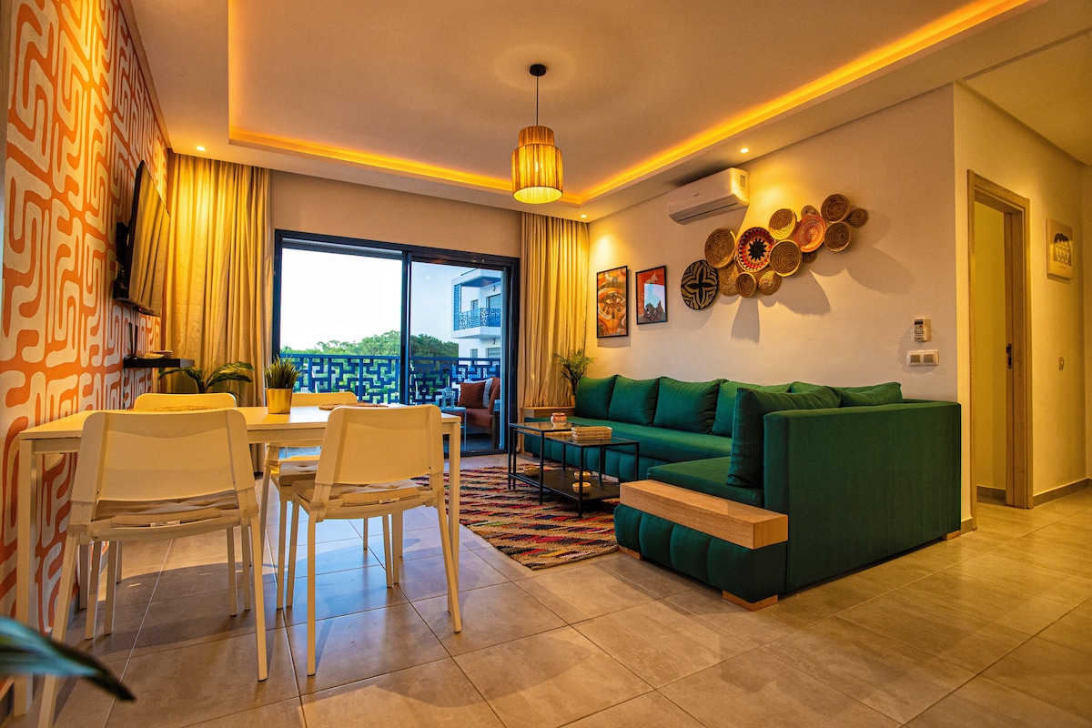 ಕ್ಯಾಬೊ ನೀಗ್ರೊದಲ್ಲಿ ನಮ್ಮ ಸೊಗಸಾದ 2BR Airbnb ಗೆ ಸುಸ್ವಾಗತ! ಪೂರ್ಣ ಅಡುಗೆಮನೆ, ವೇಗದ ವೈ-ಫೈ, 2 ಸ್ಮಾರ್ಟ್ ಟಿವಿಗಳು, ಬಾಲ್ಕನಿ ಮತ್ತು ಎಲ್ಲಾ ಕುಟುಂಬದ ಅಗತ್ಯ ವಸ್ತುಗಳನ್ನು (ತೊಟ್ಟಿಲು, ಎತ್ತರದ ಕುರ್ಚಿ) ಹೊಂದಿರುವ 6 (ಮಗು ಸೇರಿದಂತೆ) ಮಲಗುತ್ತದೆ. ಕಡಲತೀರ, ಗಾಲ್ಫ್ ಮತ್ತು 3 ದೊಡ್ಡ ಈಜುಕೊಳಗಳಿಂದ ಕೆಲವೇ ನಿಮಿಷಗಳು- ಸೂರ್ಯನಿಂದ ತುಂಬಿದ ಎಸ್ಕೇಪ್ಗಳು, ಗಾಲ್ಫ್ ಟ್ರಿಪ್ಗಳು ಅಥವಾ ರಿಮೋಟ್ ಕೆಲಸಕ್ಕೆ ಸೂಕ್ತವಾಗಿದೆ. ಆರಾಮ, ಸೇವೆ ಮತ್ತು ವಿಶ್ರಾಂತಿಗಾಗಿ ಸುಂದರವಾಗಿ ವಿನ್ಯಾಸಗೊಳಿಸಲಾಗಿದೆ. ಸೂಚನೆ: ಮೊರೊಕನ್ ಕಾನೂನಿನ ಪ್ರಕಾರ ಯಾವುದೇ ಪಾರ್ಟಿಗಳು, ಆಲ್ಕೋಹಾಲ್, ಧೂಮಪಾನ ಅಥವಾ ಅವಿವಾಹಿತ ದಂಪತಿಗಳಿಲ್ಲ.